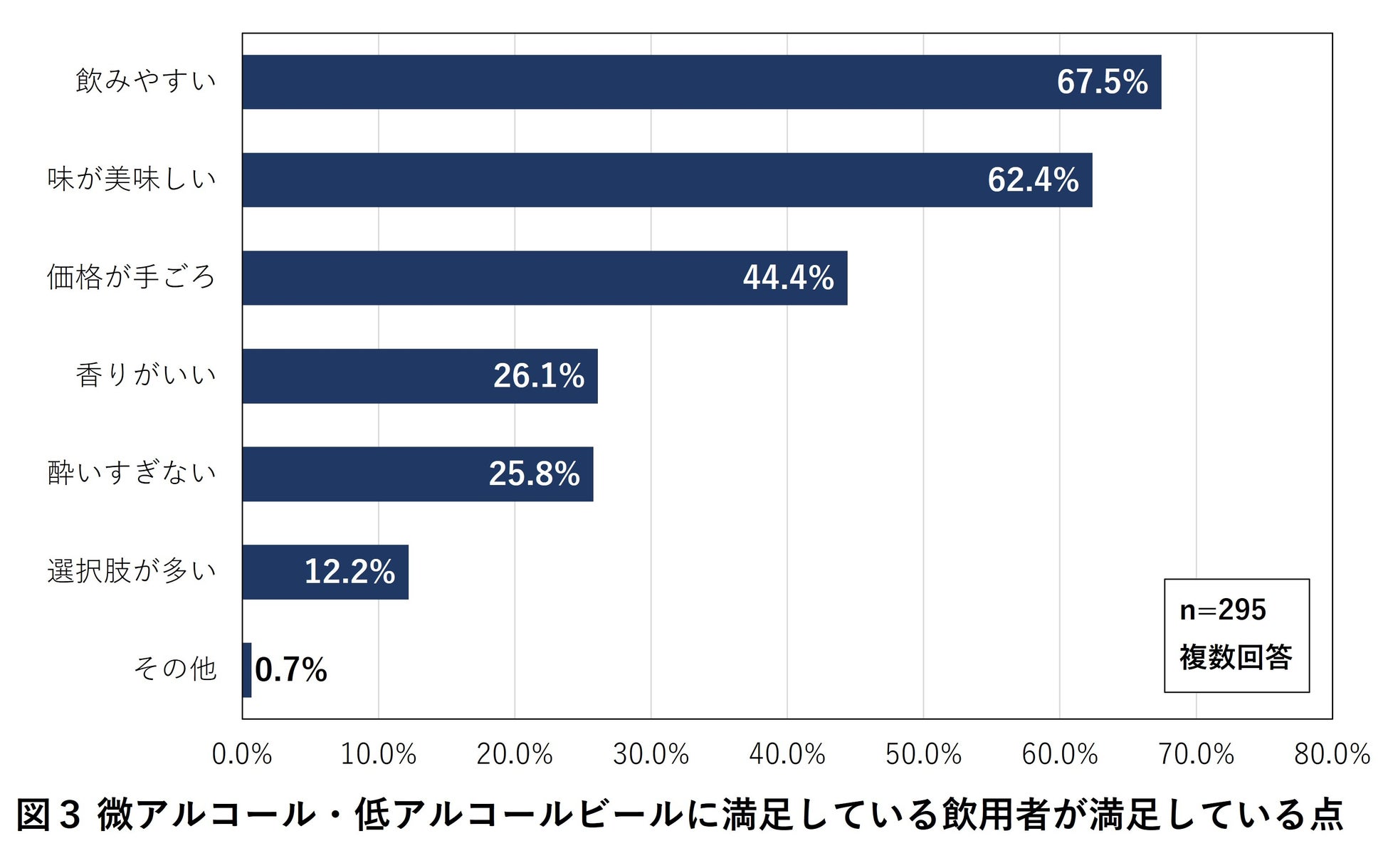 微アル・低アルビールに満足する人の約62%が「味が美味しい」/ お酒に弱い人の「飲める度数で飲み比べ」や「飲めない人だけで気兼ねない飲み会」のニーズも明らかに