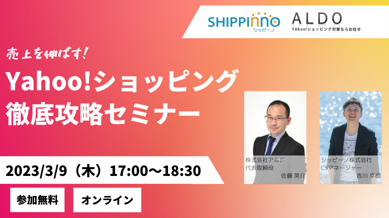 【Yahoo!ショッピング徹底攻略】アルド、シッピーノ共催セミナー開催 3/9(木)