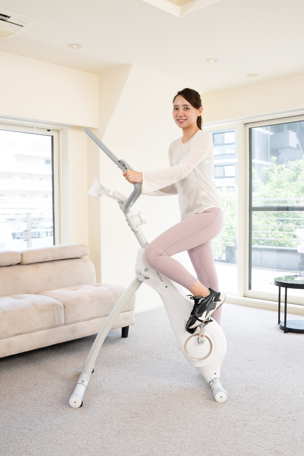 例えば、ROOM FITのラインナップの一つで、人気の高いROOMBIKE(ルームバイク)は、自宅だけでなく、オフィスに持ち込んでも、デスクの下に目立たずに置ける。社内でスマートな顔で仕事をこなしながら、足下ではフィットネス。ちょっとシュールかもしれないが、オフィスで注目を浴びるのは間違いなし。