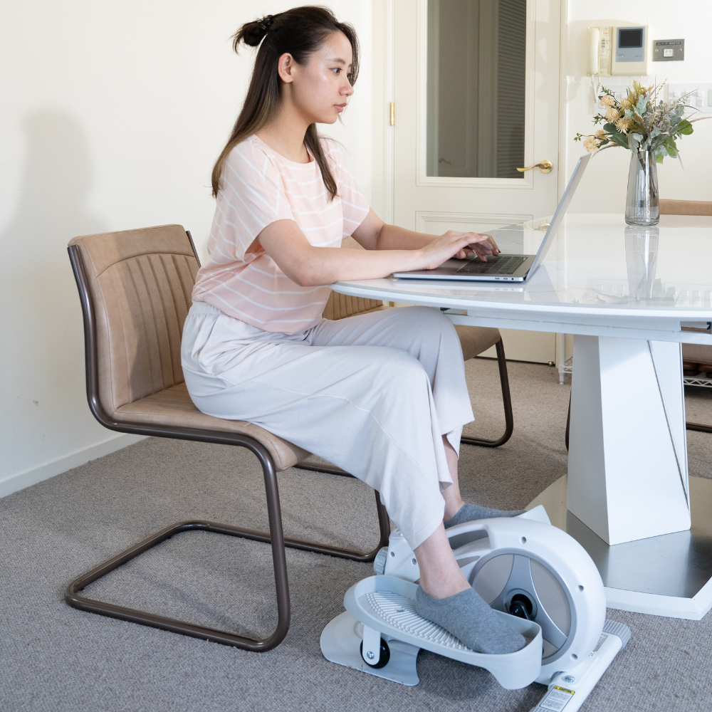 立っても座っても使用可能な ミニバイク。 楕円の動きをするため関節にやさしく使える。さらに、コンパクトで軽量なため、自宅やオフィスにあるデスクの下でも使用ができて、収納も簡単。ROOMBIKEによるワークアウトは足がペダルから離れることがないため、背中、腰、膝、足首への怪我のリスクも低く、関節にやさしい低衝撃のトレーニングが可能だ。