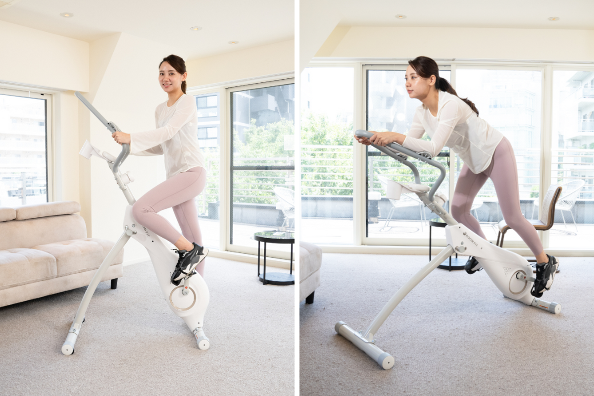 国内では珍しい、ランニング、階段、山登りの動きが1台でできる立漕ぎエアロバイク。傾斜を ランニング、スピニング、コアモードの3段階レベルから選べ、強度を8段階に設定ができるので、運動初心者から上級者までに対応している。 全身運動と有酸素運動ができ、電源無しで折り畳みが可能だ。コンパクトに収納もできるので気軽に運動ができる。