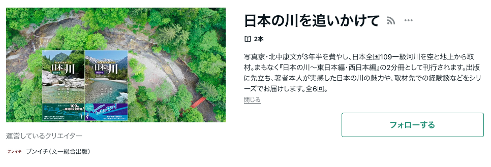 本書の刊行に先立ち、メディアプラットフォーム『note』で著者本人が実感した日本の川の魅力や、取材先での経験談などを紹介中。全6回。