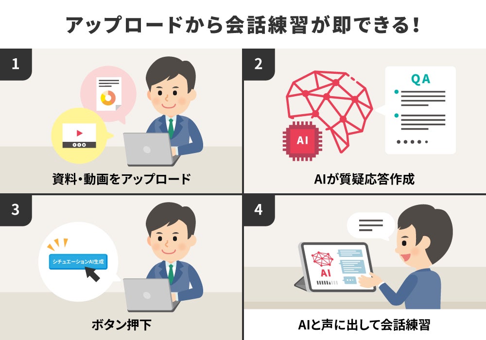 「iRolePlay」は、研修資料や動画をアップロードするだけでAIとリアルなロールプレイができる会話トレーニングプラットフォームです。多くの企業から「もっと手軽に利用したい」というご要望を受け、本機能を開発しました。