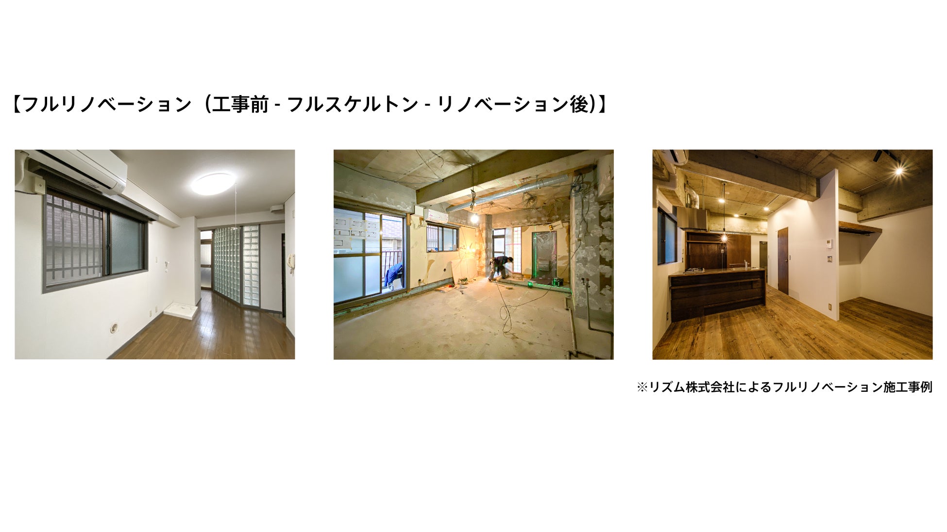RVDCでは、収益不動産における「インスペクション」と「フルスケルトン解体」、そして「リノベーション」を組み合わせた「フルリノベーション」を通して