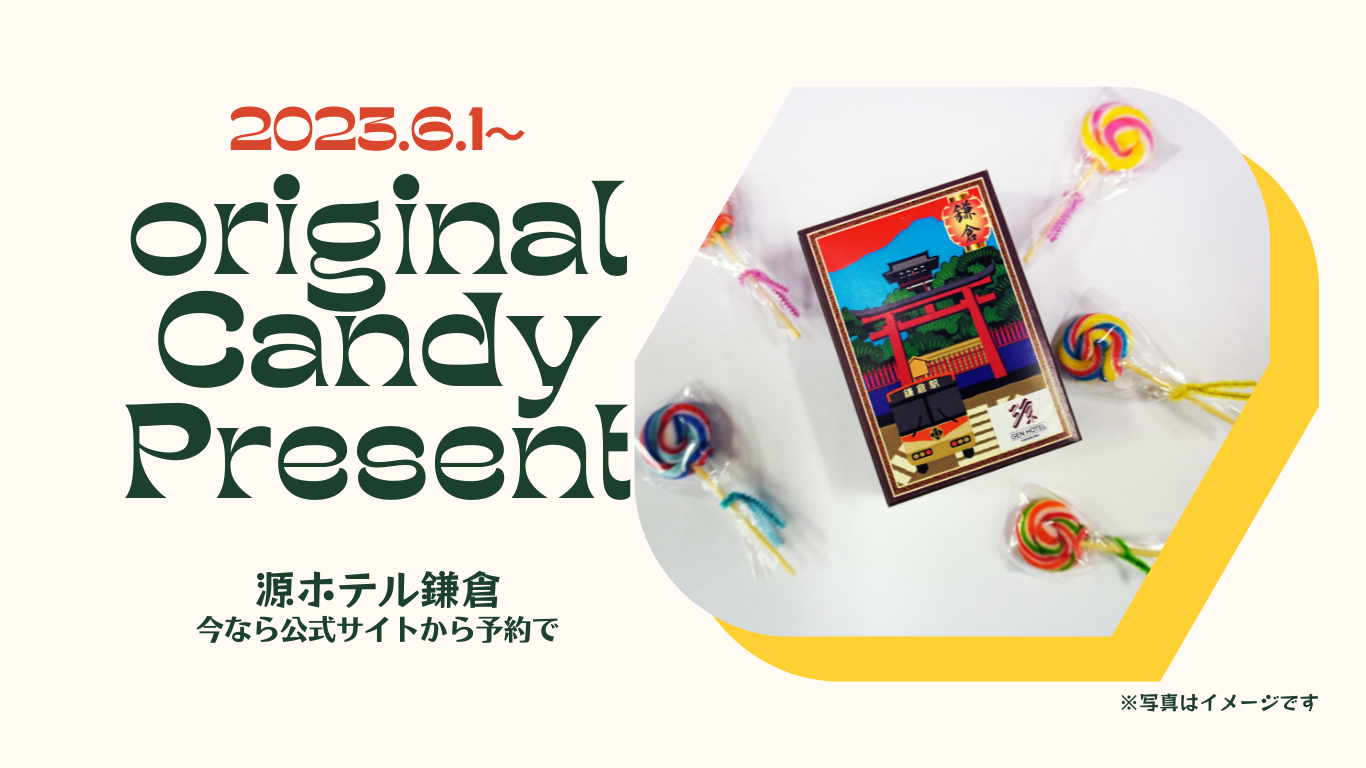 【6月予約分より開始】源ホテル鎌倉の公式サイトから予約された方に「限定鎌倉キャンディ」プレゼント