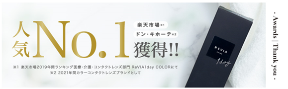 ※楽天市場2019年間ランキング医療・介護・コンタクトレンズ部門 ReVIA1day COLOR、ドン・キホーテ2021年間カラーコンタクトレンズブランドにて獲得
