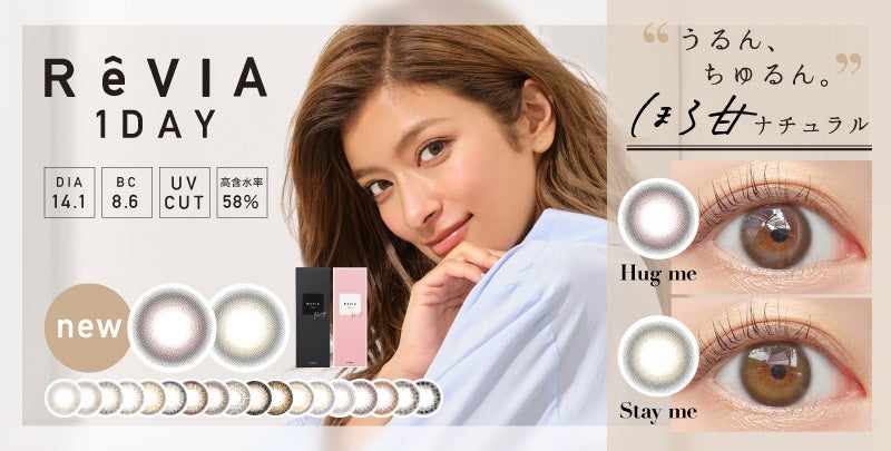 カラコン人気No.1※ブランドReVIA〈レヴィア〉1dayより新色発売開始!「“うるん、ちゅるん。” ほろ甘ナチュラル」な2カラー