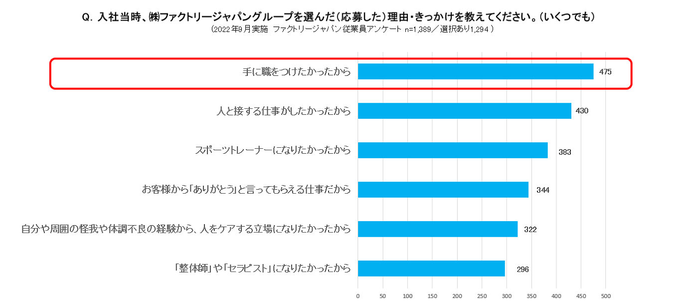 - 入社当時、ファクトリージャパンを選んだ(応募した)理由 上位5位まで