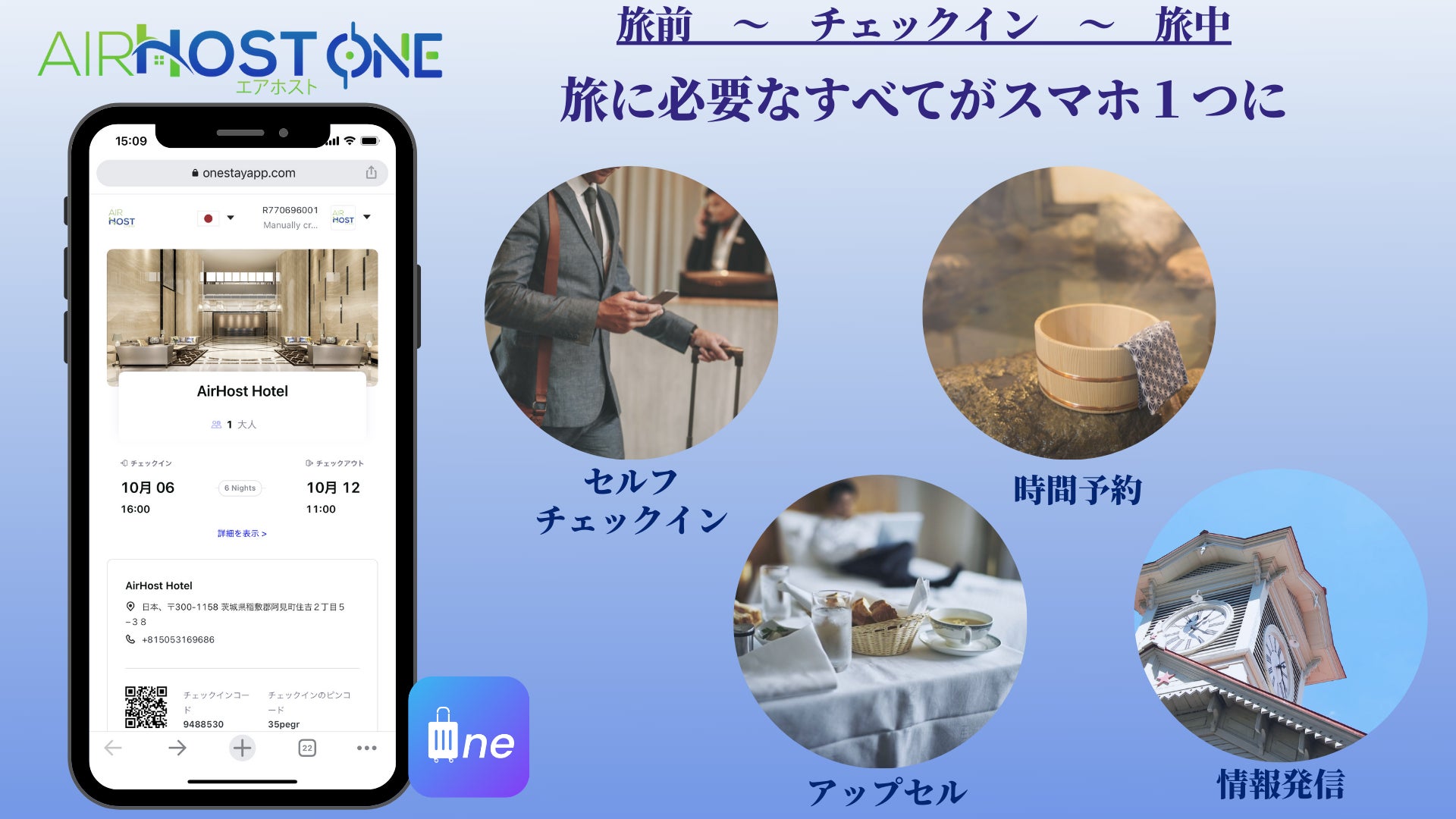 「AirHost ONE」は、旅前から、旅中・旅後まで効果的に旅行者にアプローチができる旅行者向けアプリ(Webブラウザ, iOS, Android 対応)です。