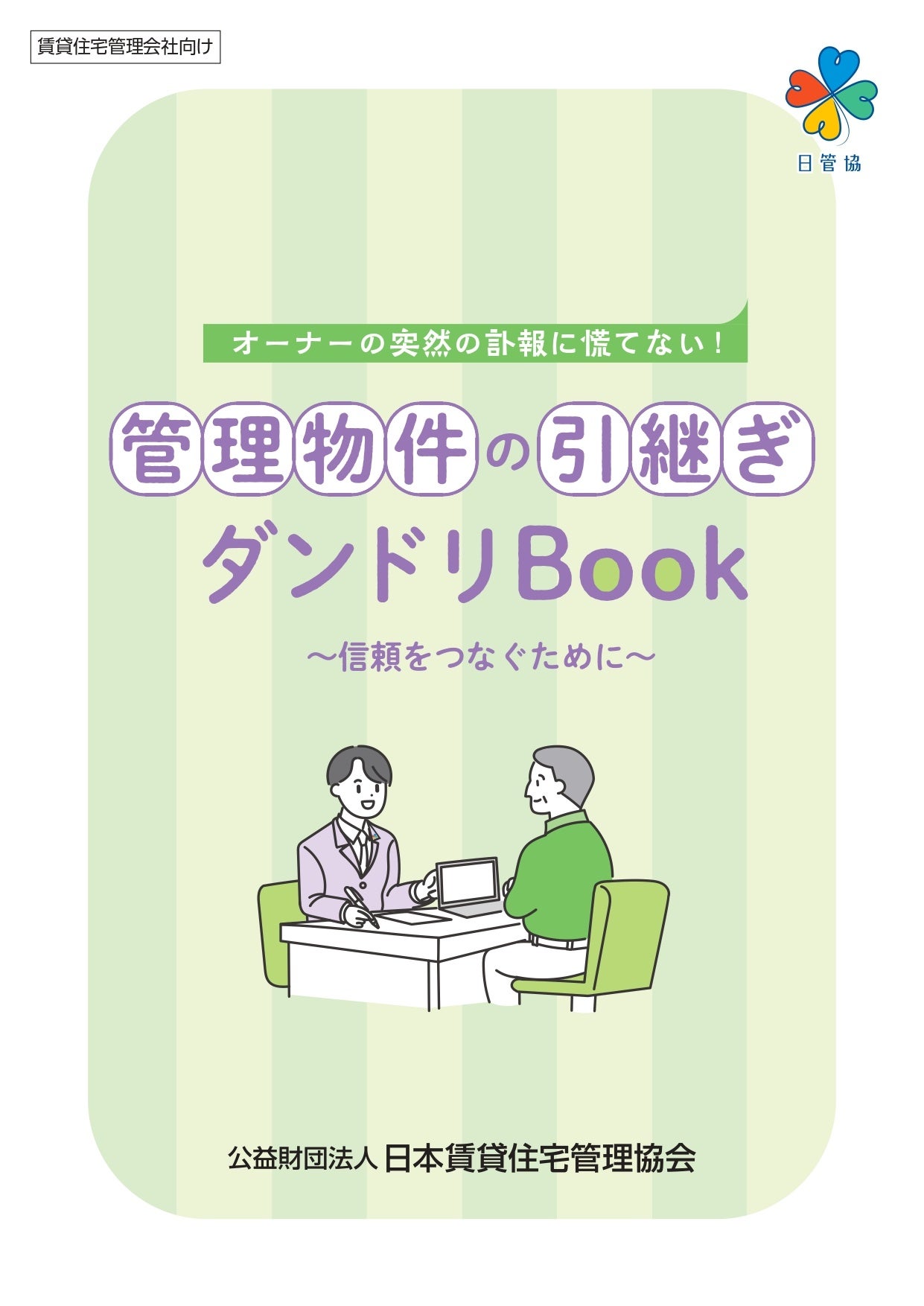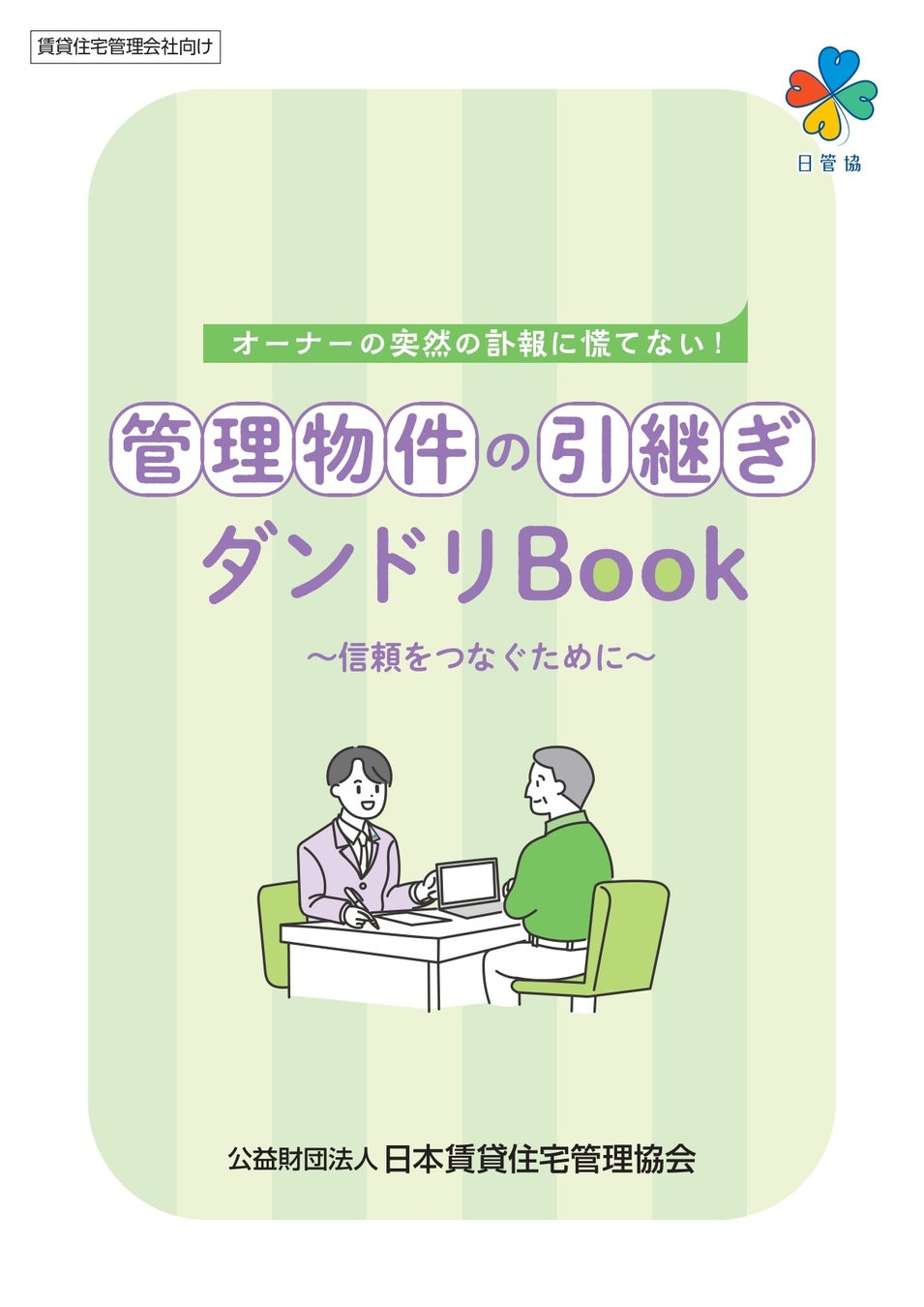 公益財団法人日本賃貸住宅管理協会(本部:東京都千代田区、会長:塩見紀昭、以下:日管協)は、このたび『管理物件の引継ぎ「ダンドリBook」』を会員管理会社向けに発行いたしました。管理会社が管理する賃貸住宅のオーナーが突然逝去された場合の初動対応から相続人(新オーナー)引継ぎまでの流れや注意点をまとめたもので、業界として対応フローの共通化を目的としています。2024年からは相続登記が義務化されるなど、近年の空き家問題、所有者不明土地の問題など相続が関係する社会的課題を解決する動きが活発化しています。当協会としては、間違いのない判断と実務対応策を管理会社に共有することでトラブルや管理会社変更を防ぎ、オーナーとの信頼関係を強固に保ってもらいたい思いで編集し発刊の運びとなりました。
