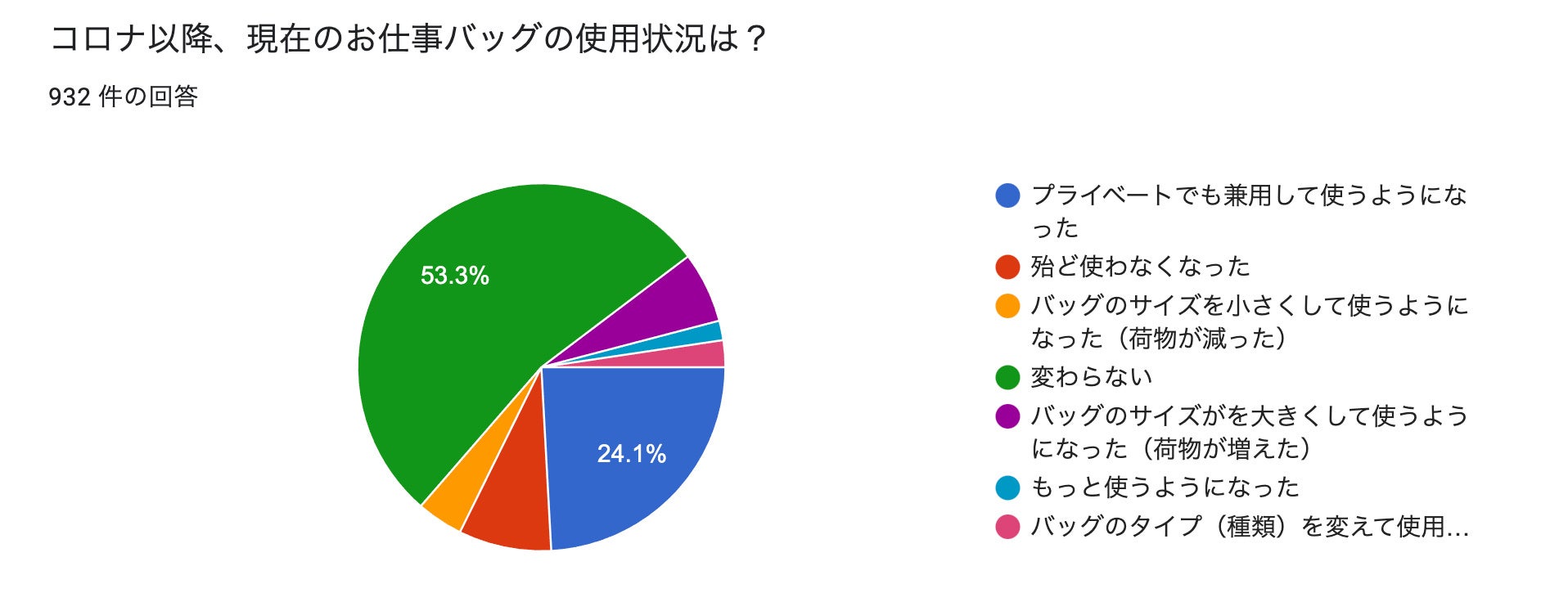 - 24.1%が「コロナ後、仕事用バッグをプライベートでも使うようになった」と回答。