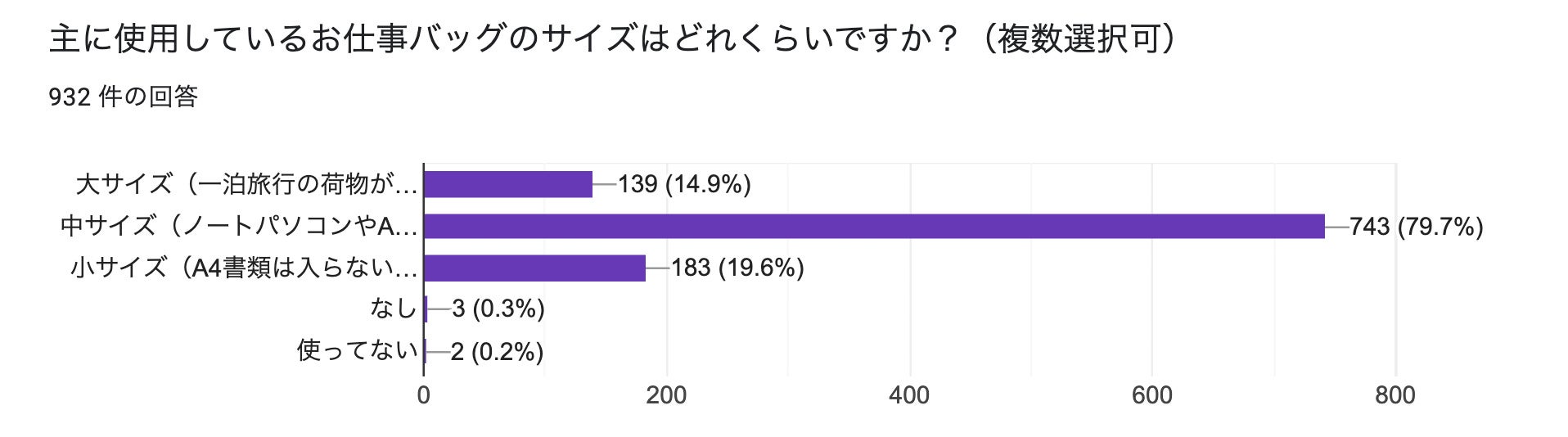 実に8割の回答者が中サイズの大きさのバッグを使用しているとのことでした。