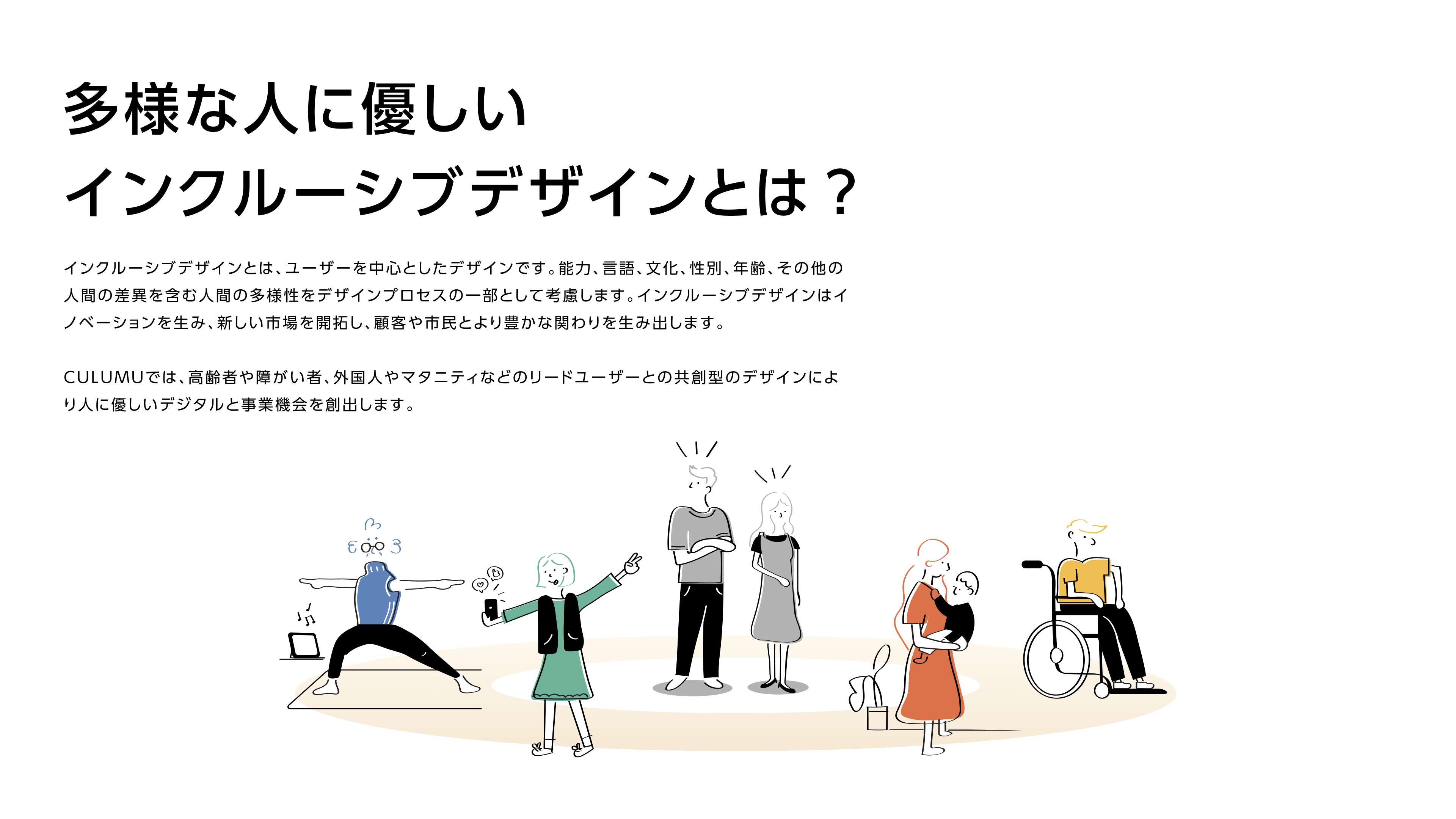 CULUMUは、株式会社STYZが運営する「多様な人々・社会と共創する インクルーシブデザインスタジオ」です。高齢者や障がい者、外国人など、これからの社会において多様な人々の声を取り入れられる(モノづくりの上流プロセスから巻き込む) ユーザー中心のアプローチをモノづくりの当たり前にします。