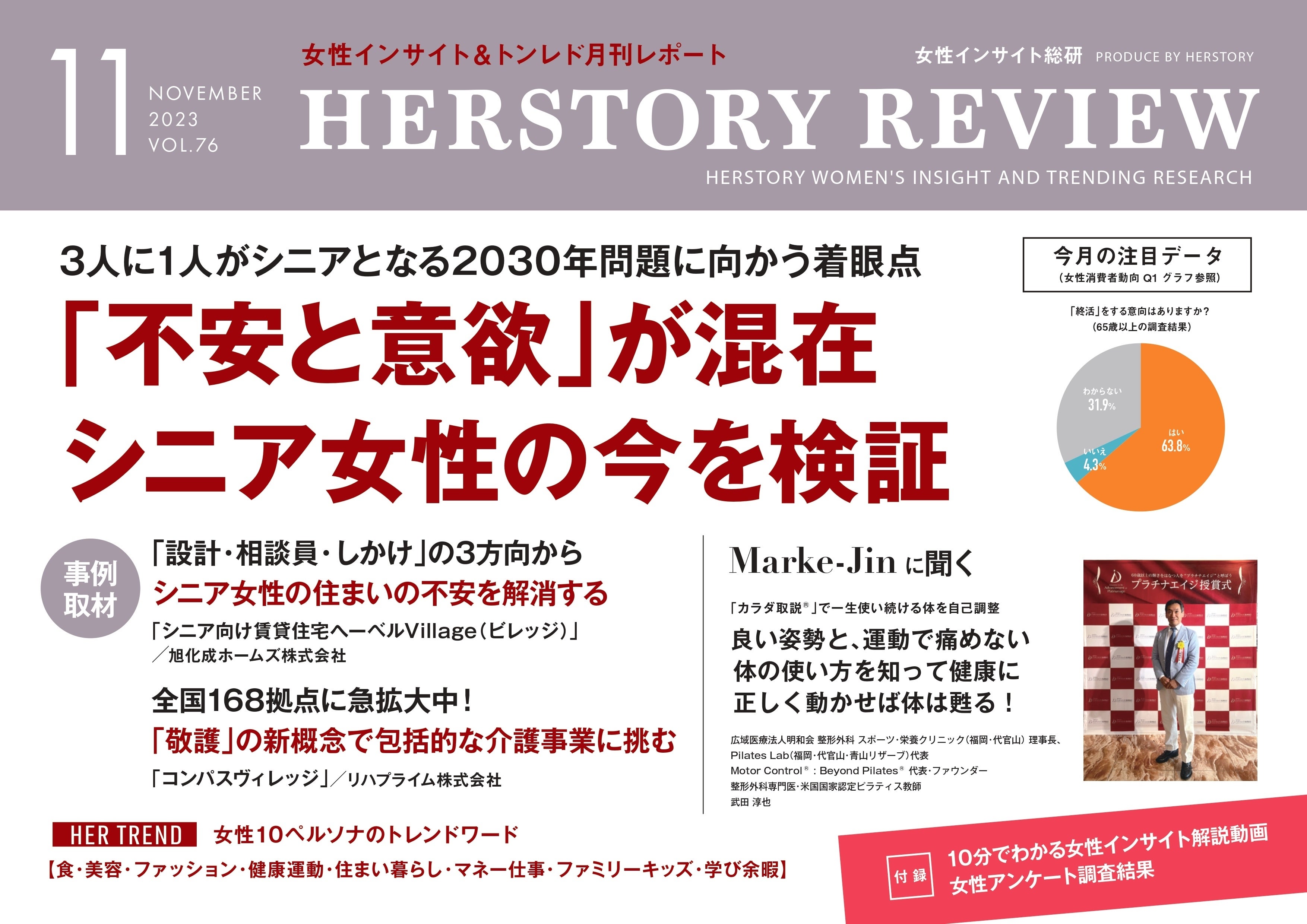 女性インサイト総研が日本女性の消費動向、市場の最新トレンドを毎月追いかけており結果の月刊レポートを展開し各企業のマーケティングに幅広く活用いただいています。本リリースの調査の詳細は11月号のHERSTORY REVIEWをぜひご覧ください。