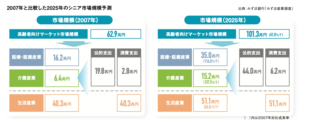 総務省統計局の「人口推計」によれば、2022年9月時点の総人口は1億2,475万人です。そのうち65歳以上の人口が3,627万人と前年(3,621万人)に比べ6万人増加し、過去最多となりました。みずほ銀行産業調査部によると65歳以上の高齢者向け市場の規模は101兆3000億円にまで増加すると予測され、シニア市場はますます大きくなっていくと考えられます。シニアに向けてビジネスを展開していくことは企業にとって大きなチャンスとなります。本調査は多様化するシニア女性の悩みやニーズを深掘りすることで新たなマーケットの開拓に生かすことを目的に実施しました。