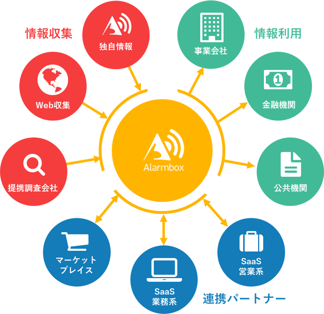 「アラームボックス」( https://alarmbox.jp )は、スマートフォンやPCから取引先を登録しておくだけで、取引先のリスクや状況変化を自動で知らせてくれるクラウドサービスです。インターネット上の情報を活用した「高精度」な与信管理を、「カンタン」に、「低価格」で導入できます。それにより、取引先の情報収集に関わる業務負荷を大幅に削減し、信用状況の変化をいち早くキャッチして、リスクに迅速に対応できます。