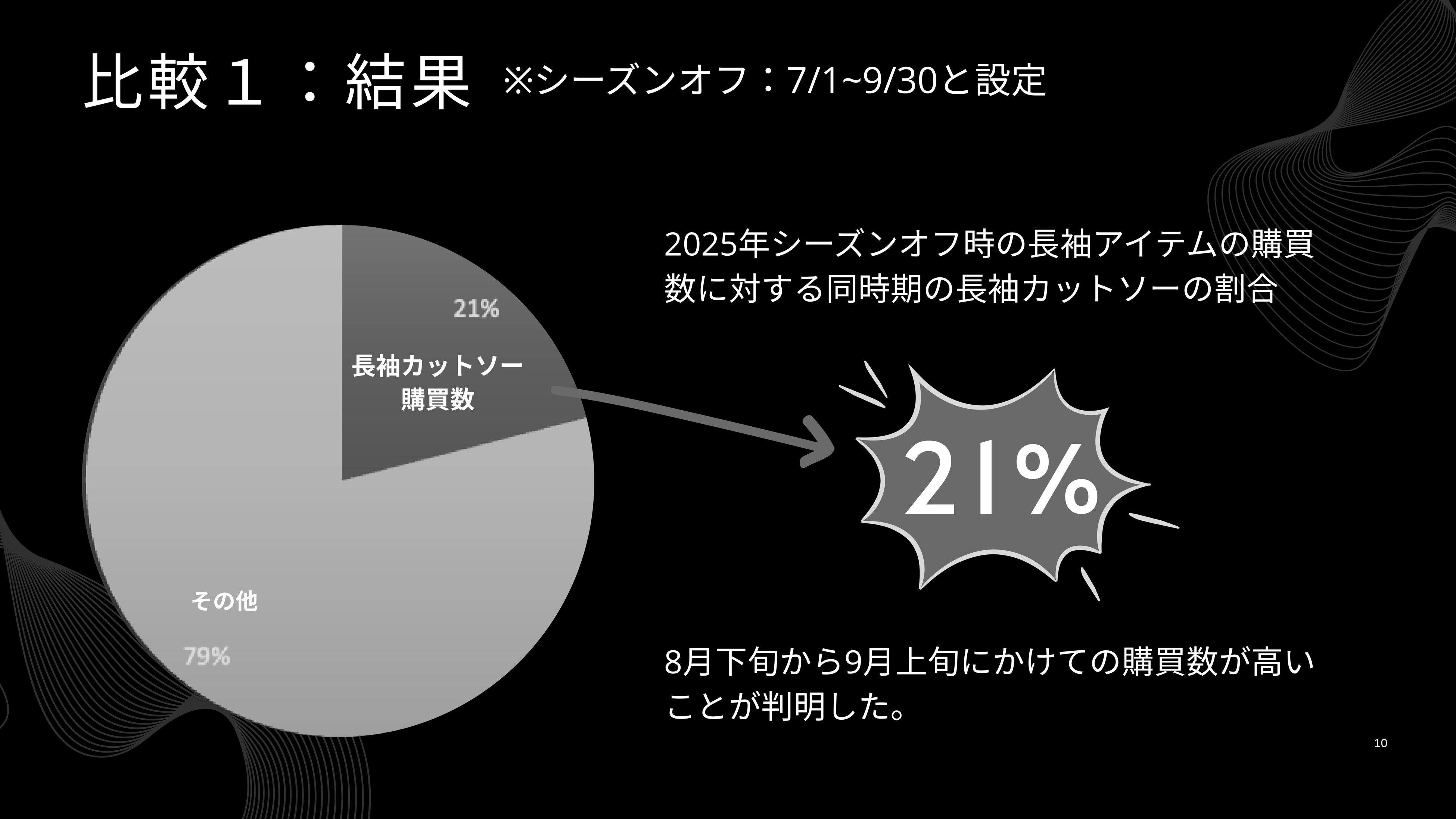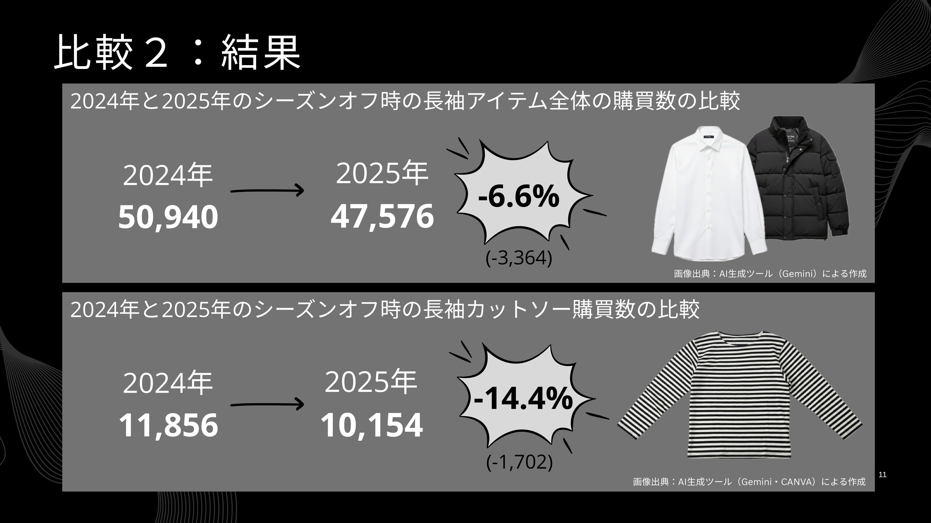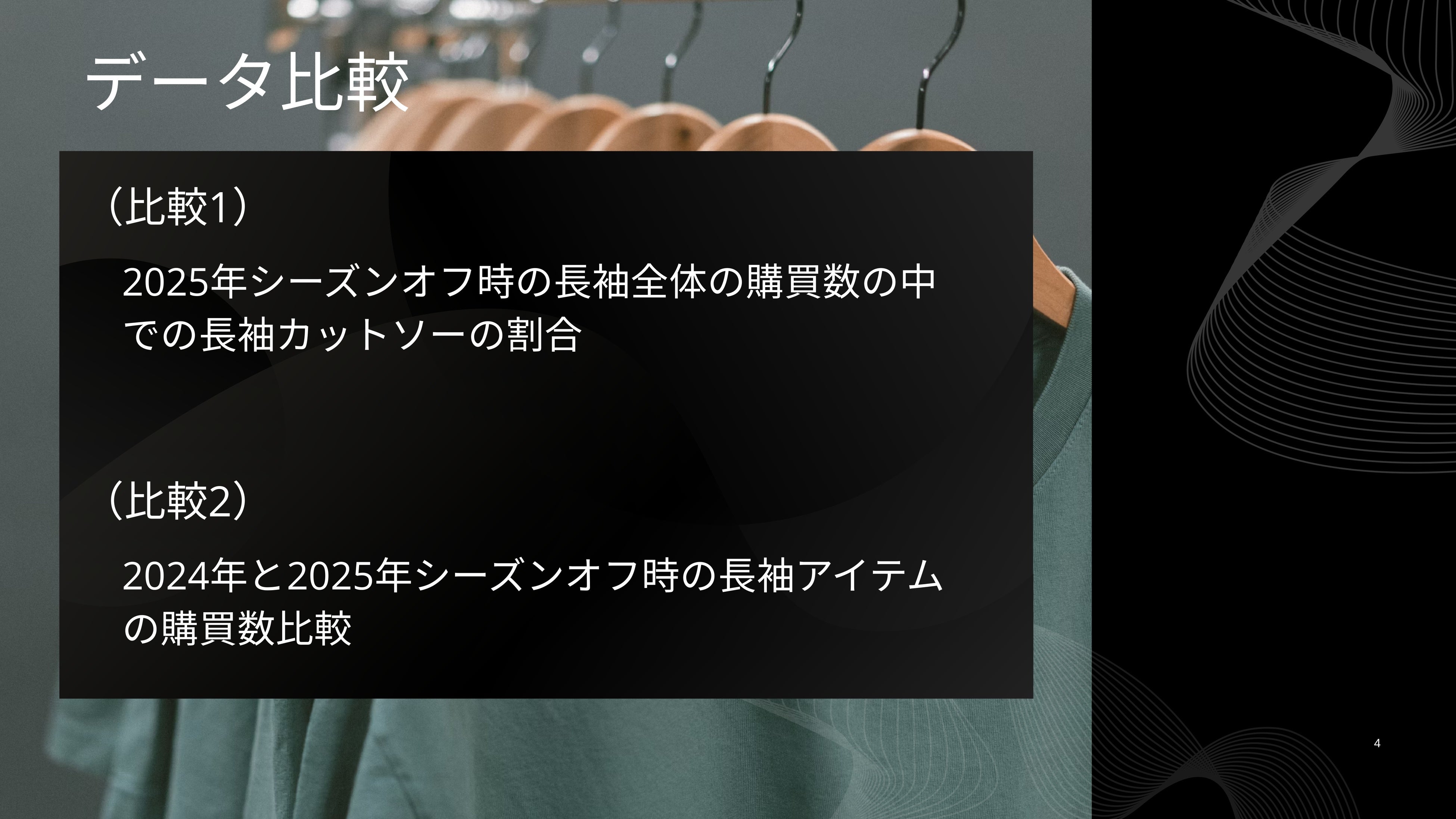 「2025年は2024年より長袖カットソーのニーズが高まっているのではないか?」という仮説自体は立証されたなかったものの、そもそも2024年、2025年ともにカットソー全体の20%程度が長袖だったという調査結果には十分示唆に富むものです。