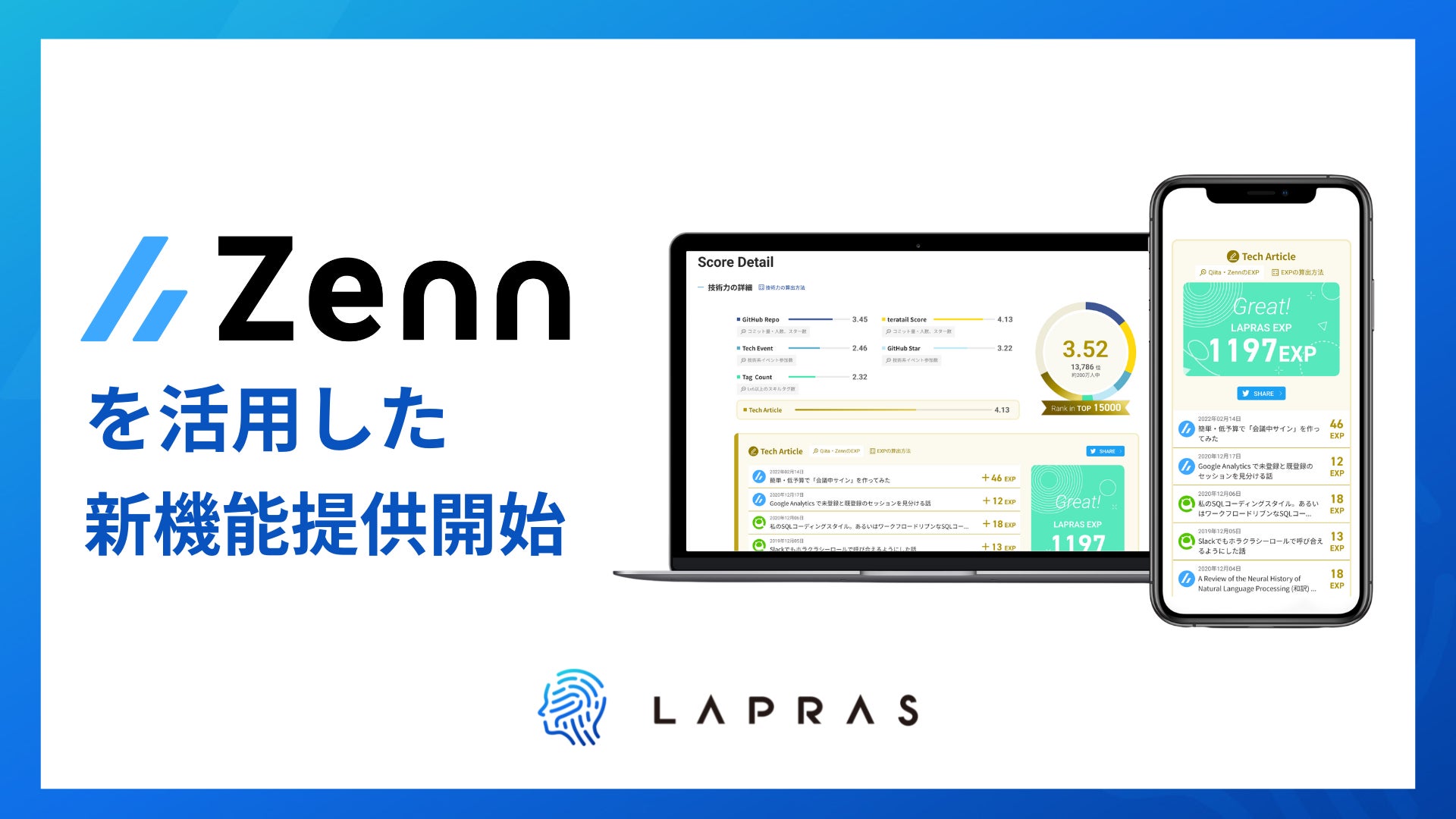 キャリアマッチングプラットフォーム「LAPRAS」、エンジニア情報コミュニティ「Zenn」を活用した新機能提供開始