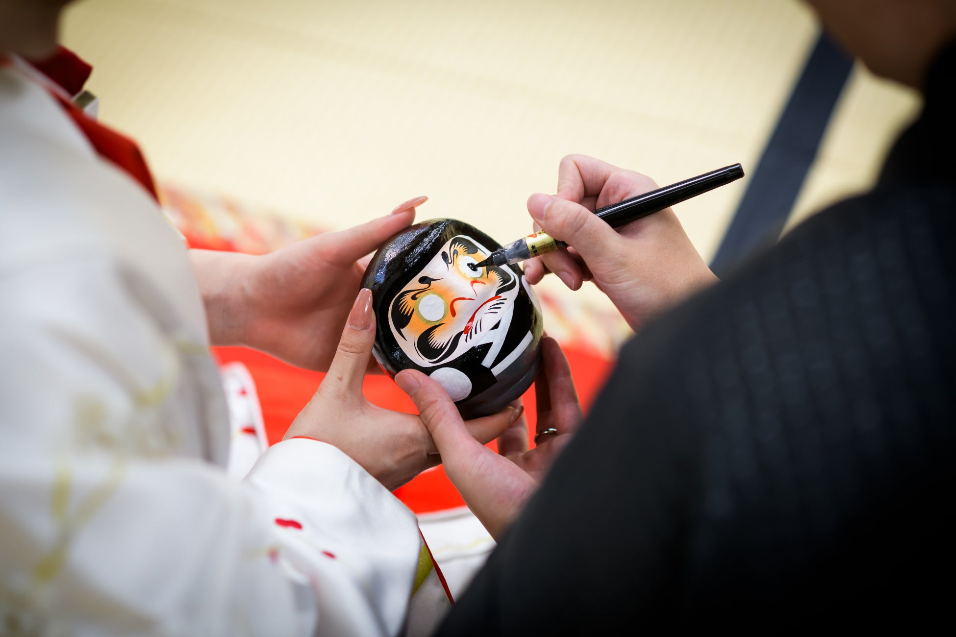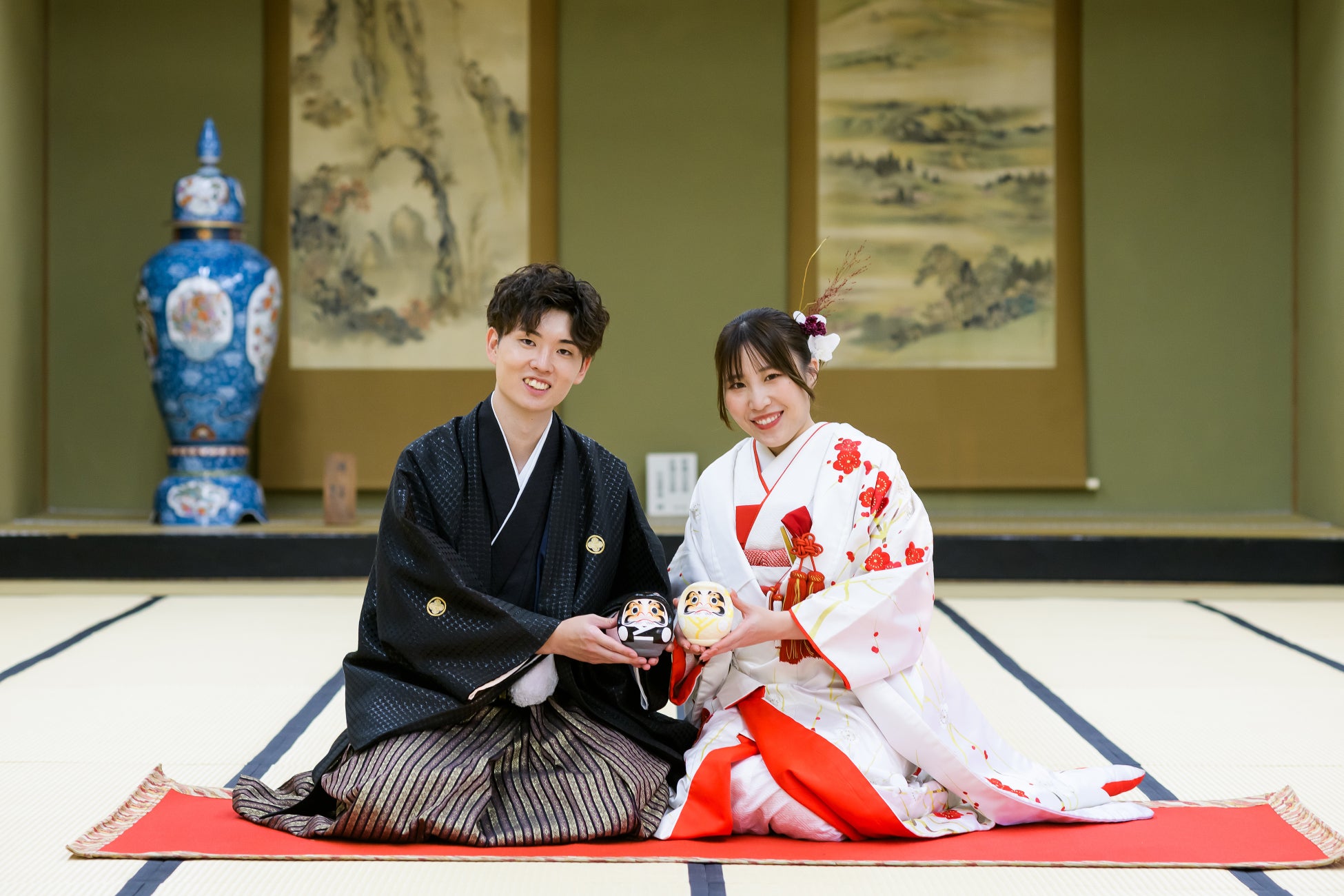 今回のプランをご利用いただいたおふたりには、記念として「臨江閣オリジナルめおとだるま」をプレゼントいたします。群馬の地で長く愛され、大切に育まれてきた“だるま”の伝統に、臨江閣の想いを重ねた、ここでしか手に入らない特別な記念品です。本記念品は、アートブランド「TOKYO LOLLIPOP」とのコラボレーションによる特別仕様で、同ブランドを手がける東京拠点の concon(コンコン)株式会社 が制作を担当しています。だるまの背中には、臨江閣の「臨」の文字を刻印し、記念アイテムとしての特別感をより一層引き立てています。