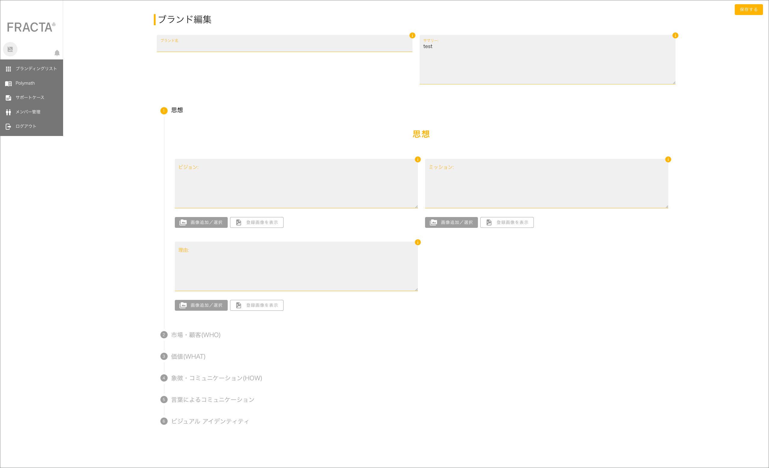 不動の星である「Polaris(北極星)」になぞらえて、ブランドの基礎を固めるためのブランディングフォーマットをオンラインで提供します。Web上で編集・保存ができるため、複数のチームメンバーで閲覧/編集が可能となります。また、サポートフォームを通じてFRACTAからのアドバイスを受け取れ、初めての方でも安心してブランディングフォーマットを作成できます。