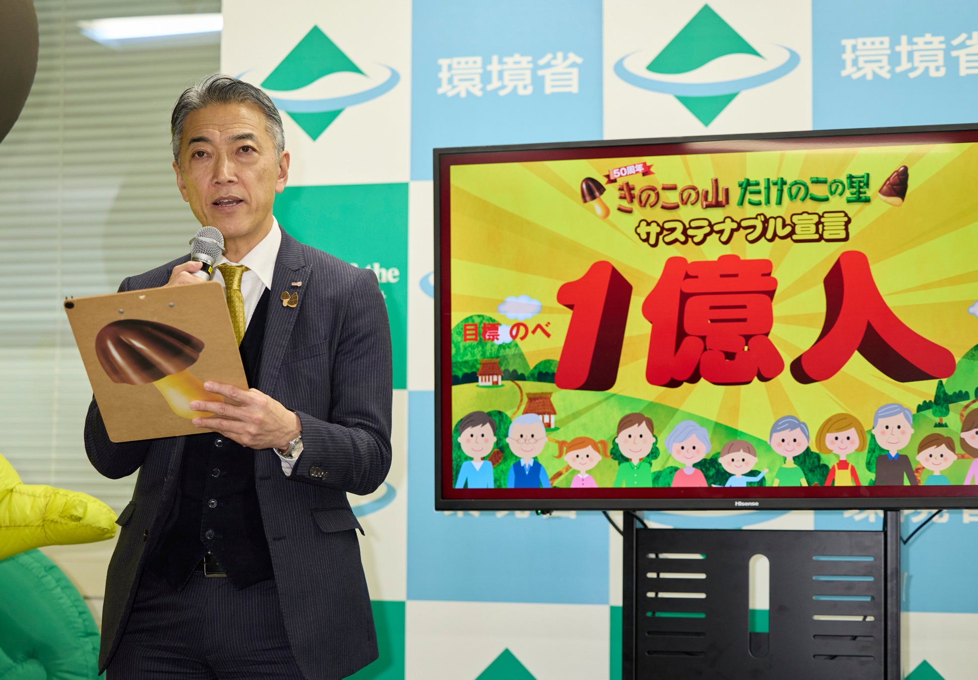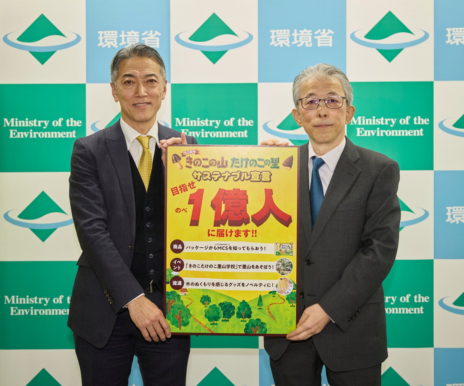 「きのこの山」50周年アンバサダーの森崎ウィンさんと共に、環境省へご報告!