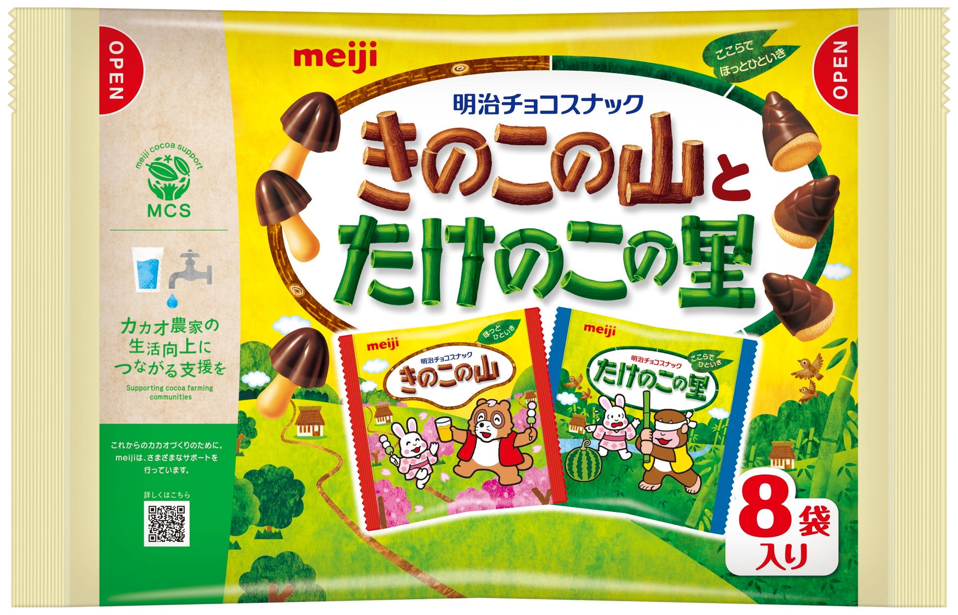 株式会社 明治(代表取締役社長:松田 克也)は、ロングセラーのチョコレート菓子ブランド「きのこの山」が今年で発売から50周年を迎えるにあたり、ブランドを支えてくださったすべての方への感謝を込めたさまざまな企画を展開いたします。そのひとつとして、キャッチコピーである「みんなに、おいしく、おもしろく。」を柱に、ブランドの原点である“里山”の大切さと、商品の主原料であるカカオの持続可能な生産・調達に向けた取り組みを啓発する活動を計画し、『きのこの山たけのこの里サステナブル宣言』として宣言いたします。