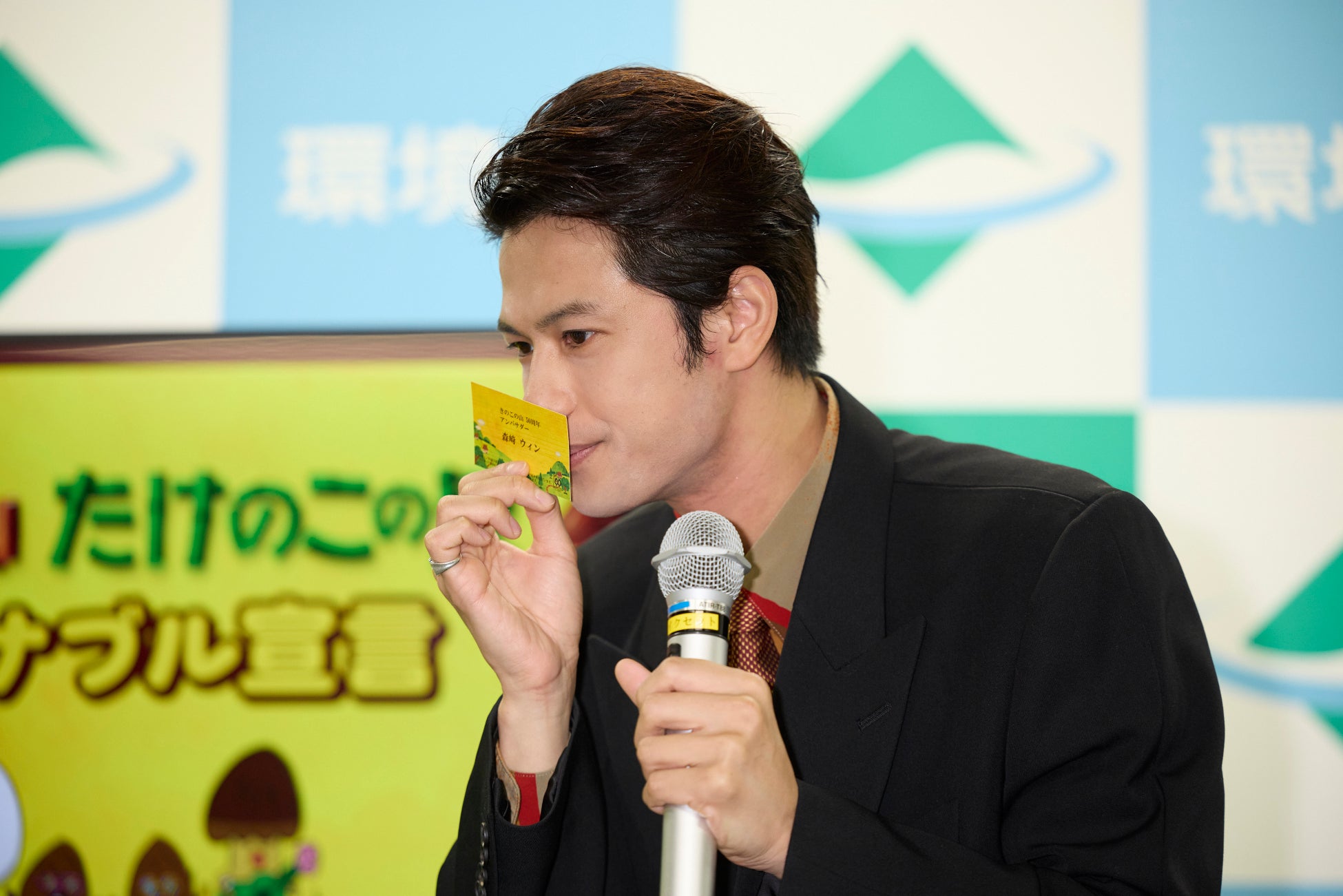 「きのこの山」50周年アンバサダーの森崎ウィンさんと共に、環境省への報告会も実施!「人生初の名刺を、里山を感じられる木で作っていただいたので、どんどん配ってPRします!」