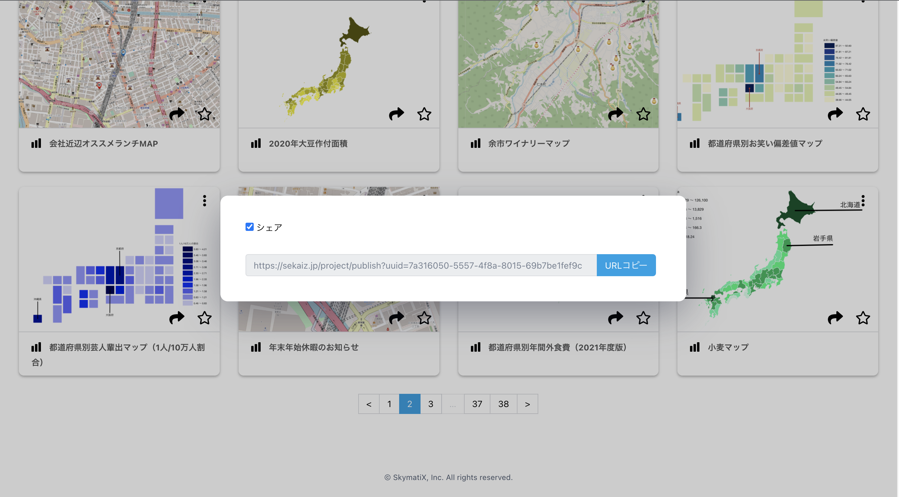 ⚫︎自分で作成したオリジナルマップを友人や仲間、仕事のメンバーと「すぐに」「簡単に」共有したいという多くの声に対応し、作成したマップを共有するためのURLが即座に発行される機能を実装。