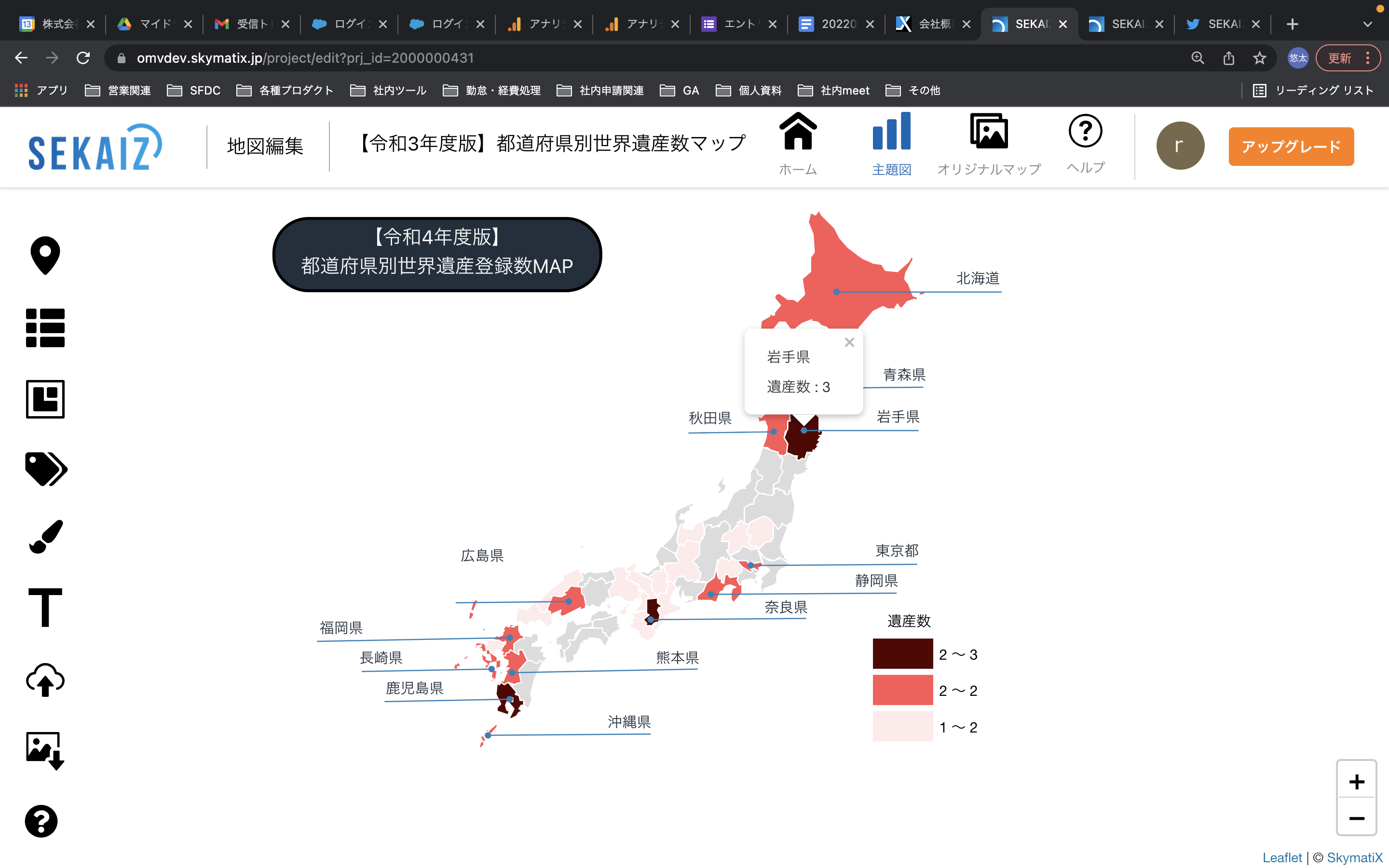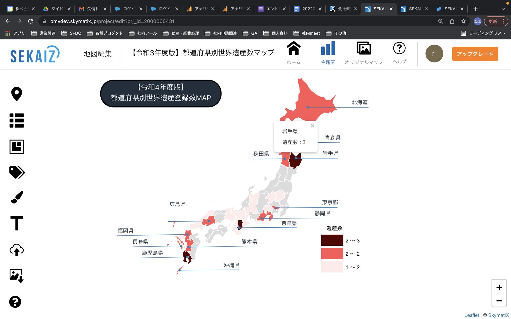 2021年5月にリリースをしたクラウド型マップ作成サービス「SEKAIZ(セカイズ)」は、サービス提供時より大変ご好評をいただいておりますが、ユーザーの皆様の更なる価値向上を目指し、大きく3つの新機能を追加いたしました。