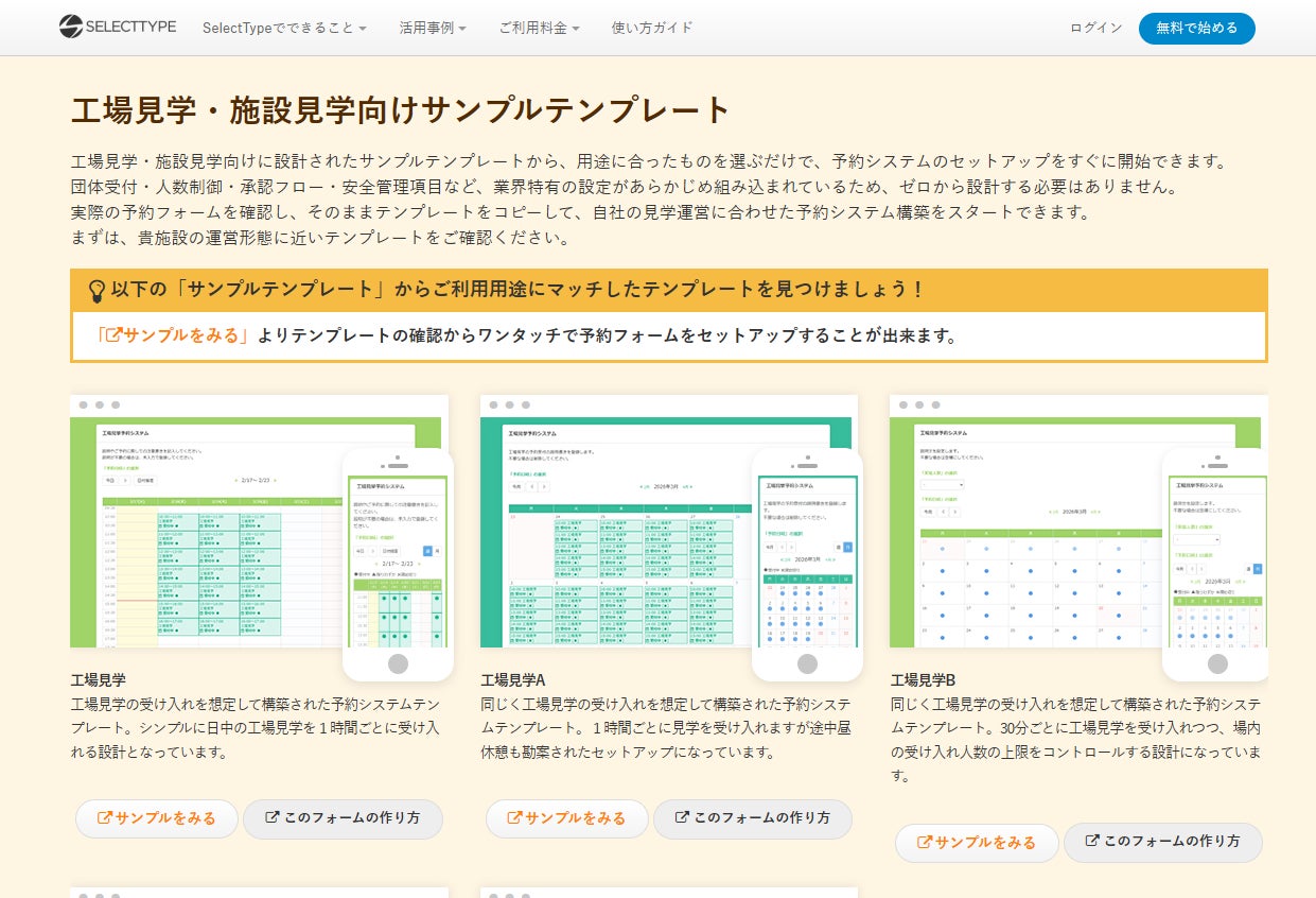 株式会社セレクトタイプ(所在地: 東京都豊島区) は、クラウド型予約システム「SelectType」において、工場見学・施設見学向け予約システムテンプレート4種を公開いたしました。