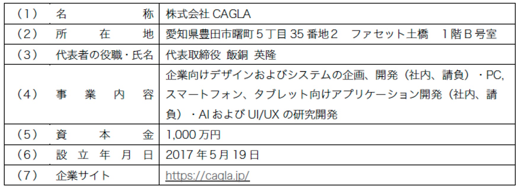 子会社(株式会社CAGLA)の概要