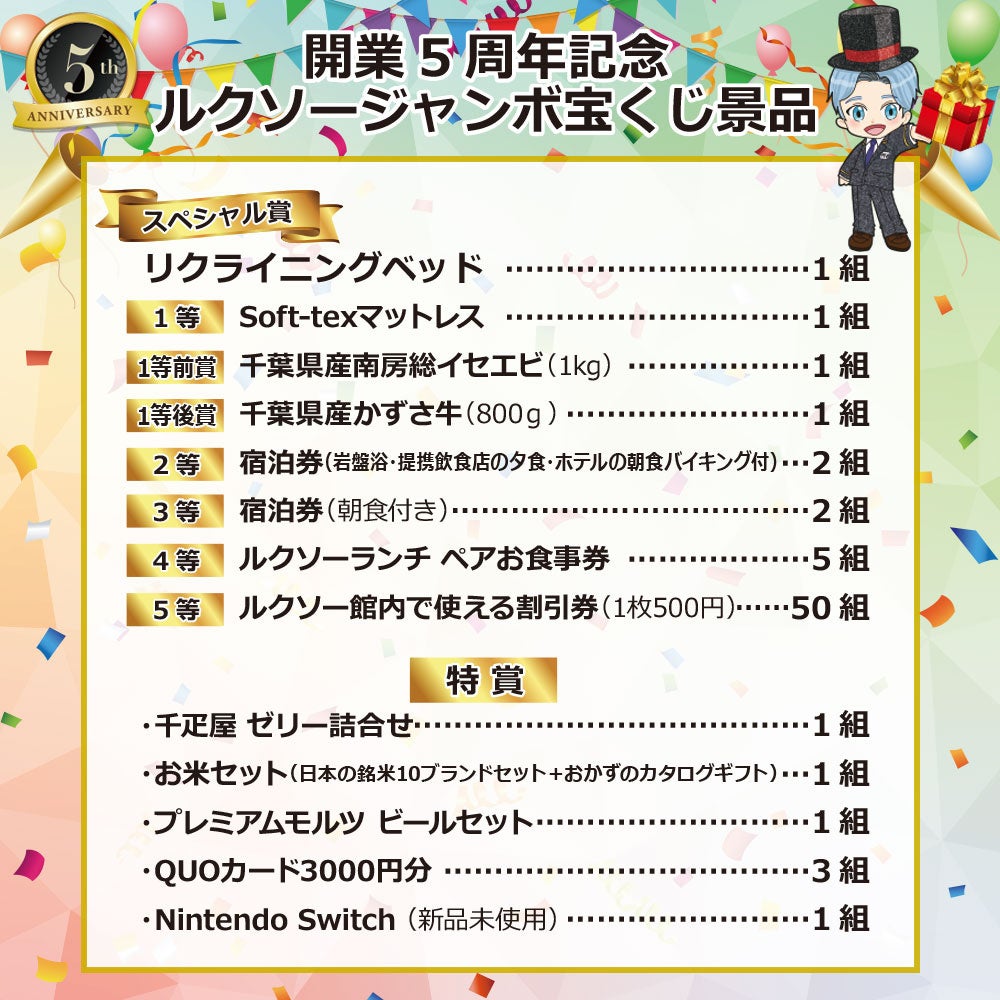 ~開業5周年記念 ルクソージャンボ宝くじ景品~