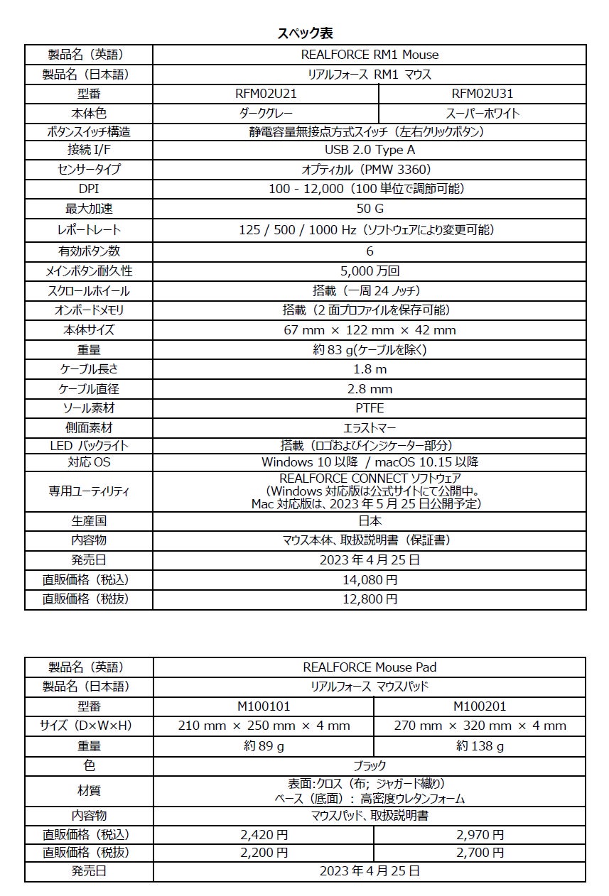 製品画像一括ダウンロード リンク: https://www.realforce.co.jp/press/photo/RM1mouse.zip