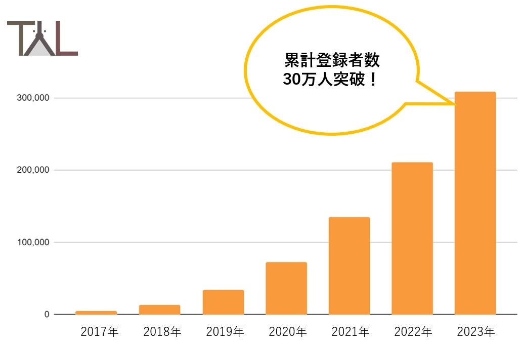 TYLでは、獣医師の採用に特化した人材紹介サービス「ベットエージェント」、動物・ペット業界に特化した国内最大規模の求人サイト「アニマルジョブ」をはじめとしたキャリアサービスを幅広く展開しています。2017年の創業当初の登録者は年間1,300人で、そこからペット市場の成長とともに拡大を遂げ、2018年度から2023年度で約23倍の登録者数増加となりました。2018年には1万人を突破、2021年に10万人を突破、2022年には20万人を突破し、大変多くの方にサービスをご利用いただきました。