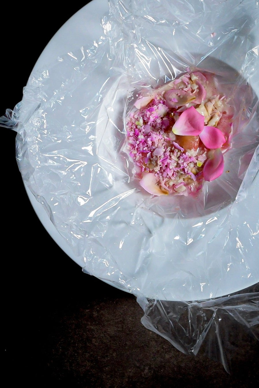創造的であたらしい花食体験「美味しい花体験」の創作に取り組むエディブルフラワー研究所。花のポテンシャルを最大限に引き出した「飾り以外」の創造性を追い求めて、各業界のトップクリエイターとコラボレーションを展開します。今回はVERT(神楽坂)の田中 俊大シェフによるバラ香るデザートが生まれました。