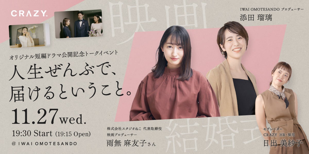 11月27日(水)、オリジナル短編ドラマ公開記念トークイベント「人生ぜんぶで、届けるということ。」を開催いたします。