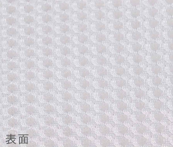 空気の通りを確保するため、表面はハニカムメッシュ地を採用。熱がこもりにくい構造です。