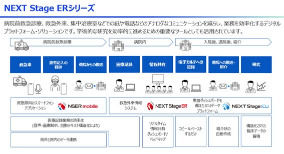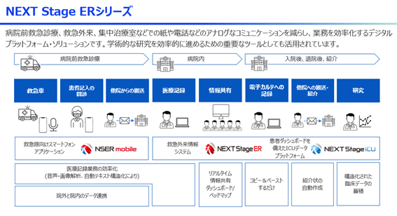 「NSERシリーズ」は医療データの分断を解決し、医療現場のDXを実現するためのプロダクトとして開発され、日本国内での導入や実証実験では、現場の業務時間の減少や救急搬送時間の減少などに効果があることが明らかとなっています。*2