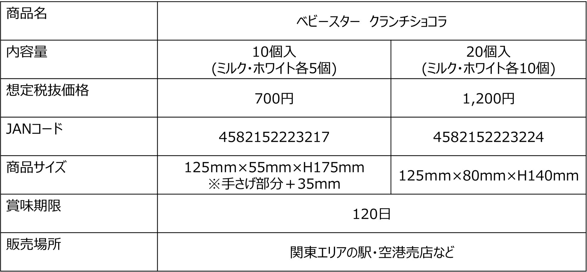 株式会社おやつカンパニーの「ベビースターラーメン」をクランチチョコレートにしました。みんなが大好きなベビースターラーメン チキン味にたっぷりのチョコレートをコーティングする事で、カリカリとした食感と、甘じょっぱい味わいが止まらない美味しさに仕上がっています。1箱でミルクチョコレートと、ホワイトチョコレートの2つの味わいが楽しめます。