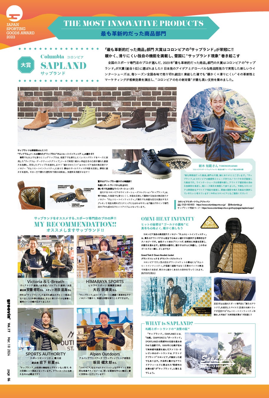 「最も革新的だった商品」部門の大賞は、アウトドアブランド「コロンビア」が開発した大人気ウインターシューズ「サップランド」が選ばれました‼“驚きのグリップ力”と“暖かさ”を実現した人気シリーズが大賞に輝きました‼2位は「ミズノ」の先端でも飛ぶ複合バットの進化版「ビヨンドマックス レガシーメタル」が選ばれ、3位は新概念を打ち立てた「キャロウェイ」の「パラダイム」シリーズが選ばれました!