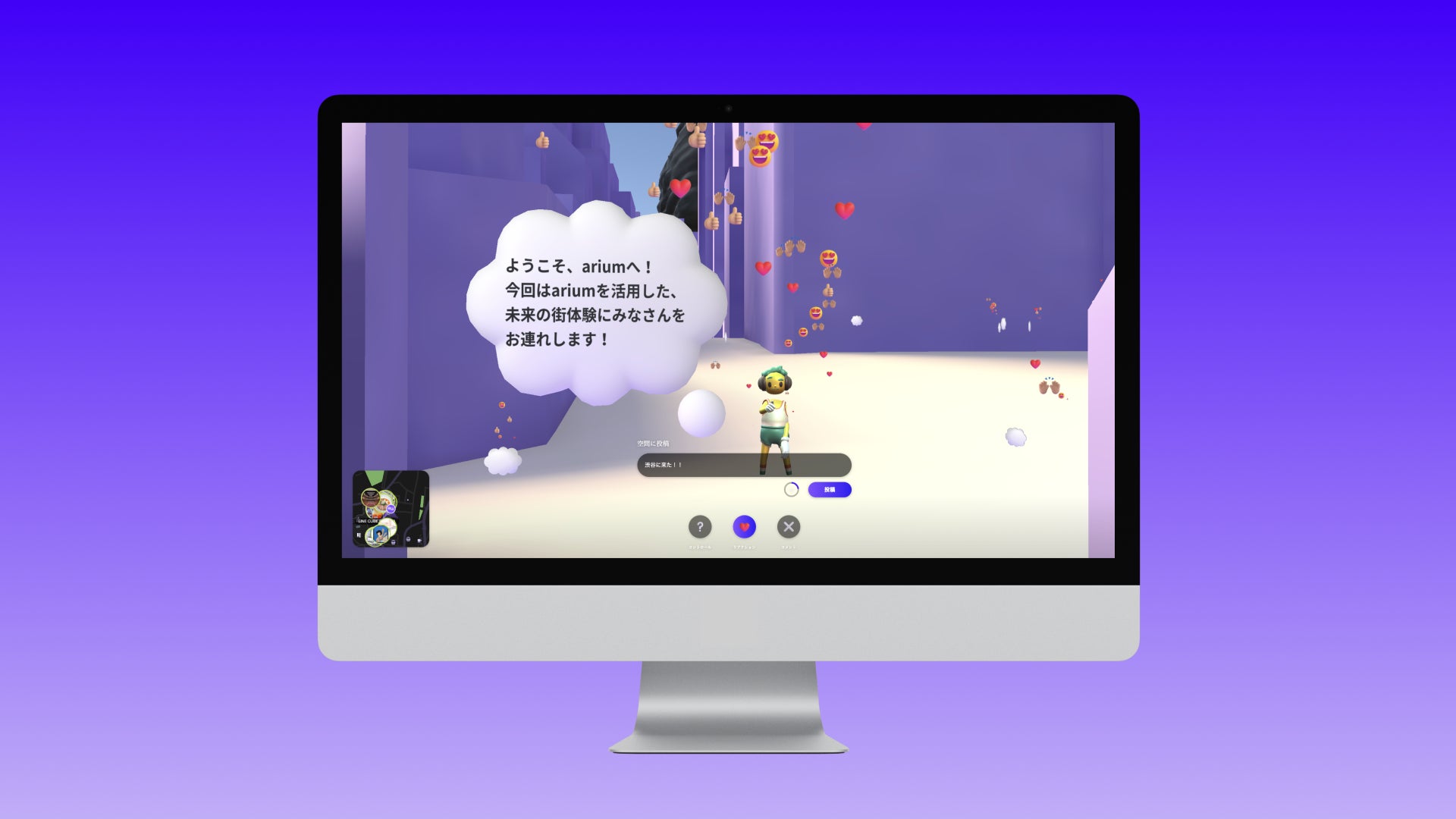 (2) PCメタバースサイト:もし実際に足を運べる時間がなかったり、遊びに行ける距離にいない場合、実在の都市空間をそっくりそのままに模したバーチャル都市にPCからアクセスしましょう。3Dコンテンツが置かれた場所は、バーチャル都市の同じ位置にも置かれています。たとえ現実世界ではすぐに会えない距離に住む友達や家族を持っていても、ariumを使えばまるで一緒に都市で同じモノを見聞きしているような繋がりを感じる、新たなコミュニケーションを楽しめます。