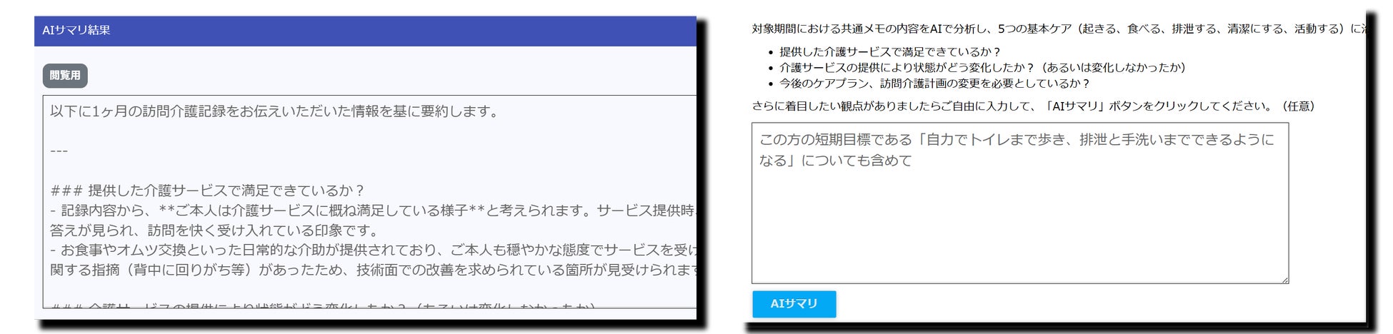 ☆ けあピアノートに入力された介護サービス記録をAIが要約・分析: