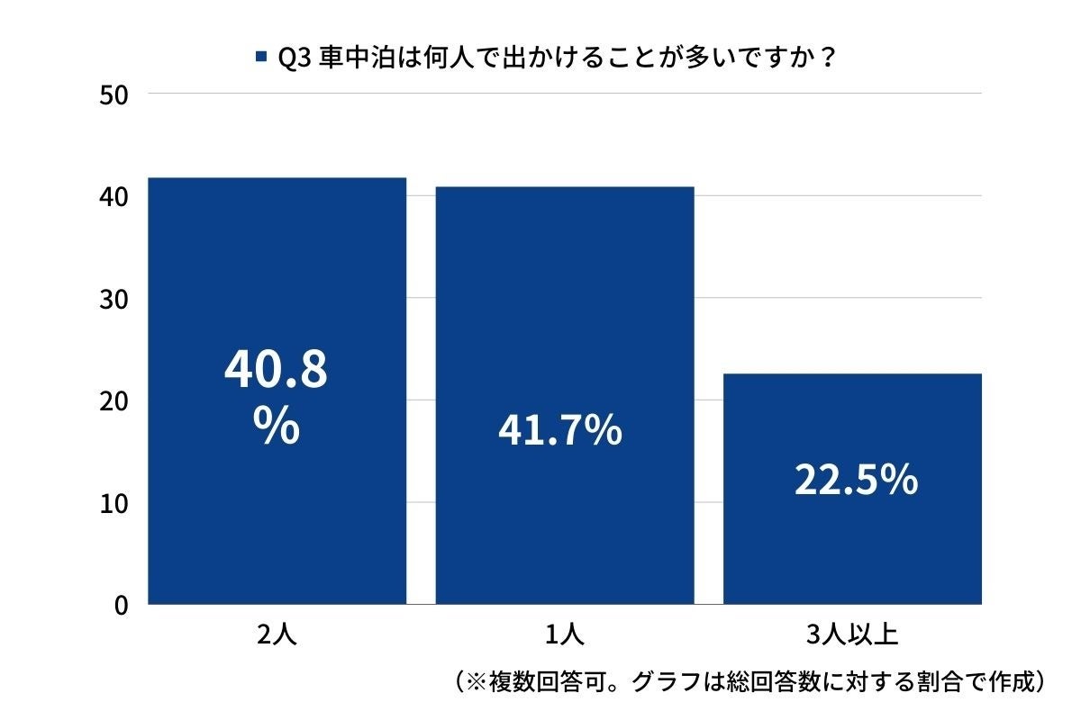◆車中泊は「1人」(40.8%)、「2人」(41.7%)で、少人数が主流派