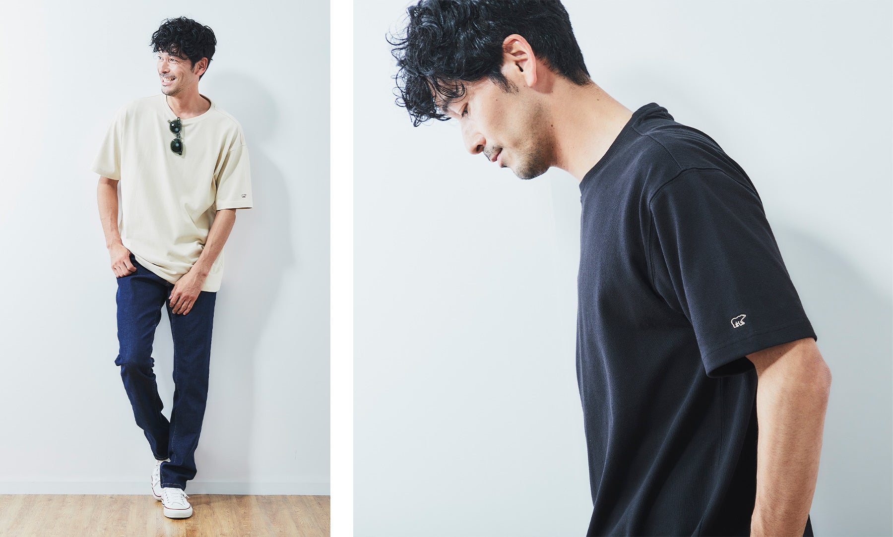 合わせるアイテムによって表情が変わるT シャツです。