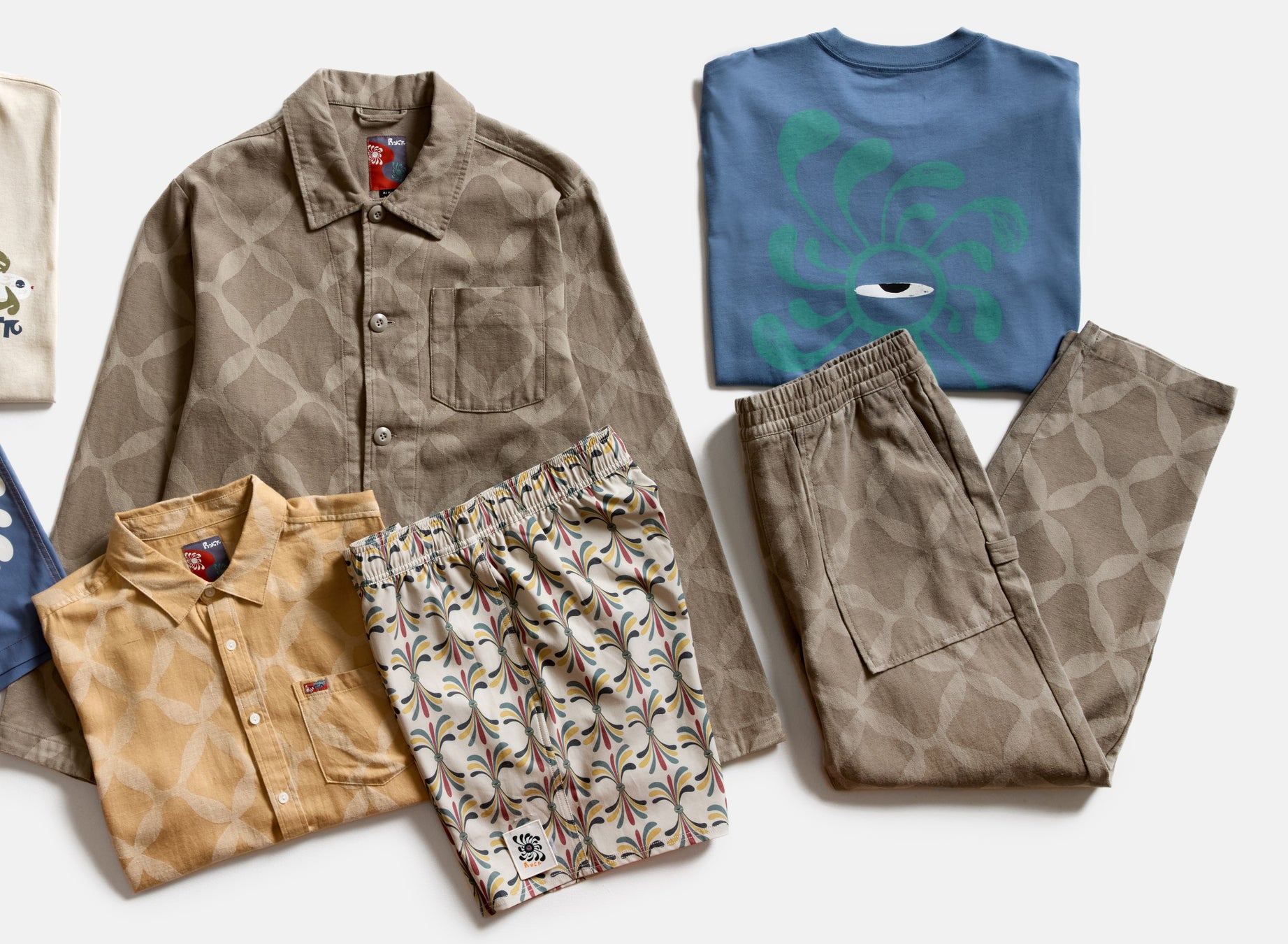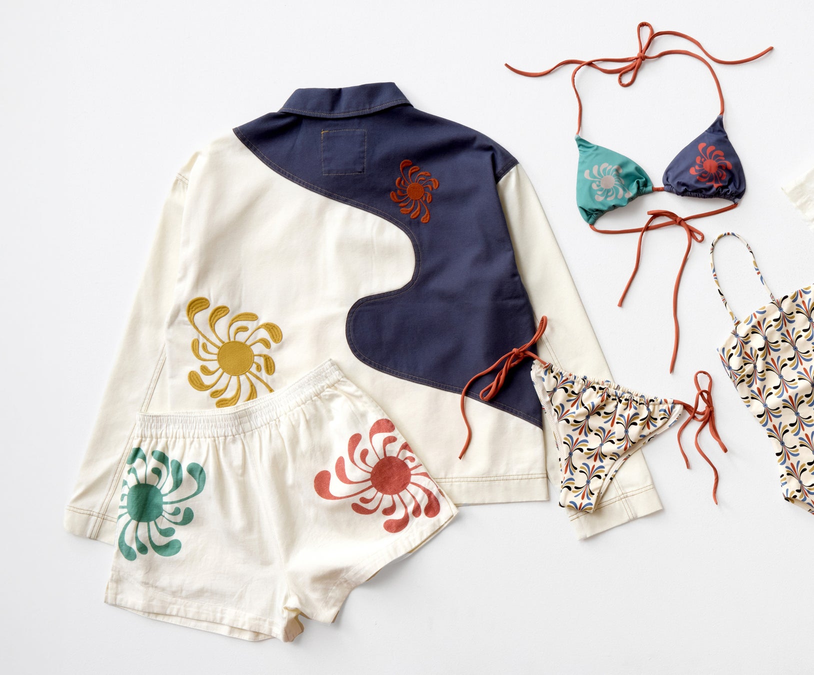 彼女の作品を構成する鮮やかな色彩や有機的なモチーフは、カリフォルニアの自然光、色彩、景観からインスピレーションを受けており、本コラボレーションでは、そんな彼女のアートワークを落とし込んだジャケットやシャツ、Tシャツ、ショートパンツなどを展開いたします。