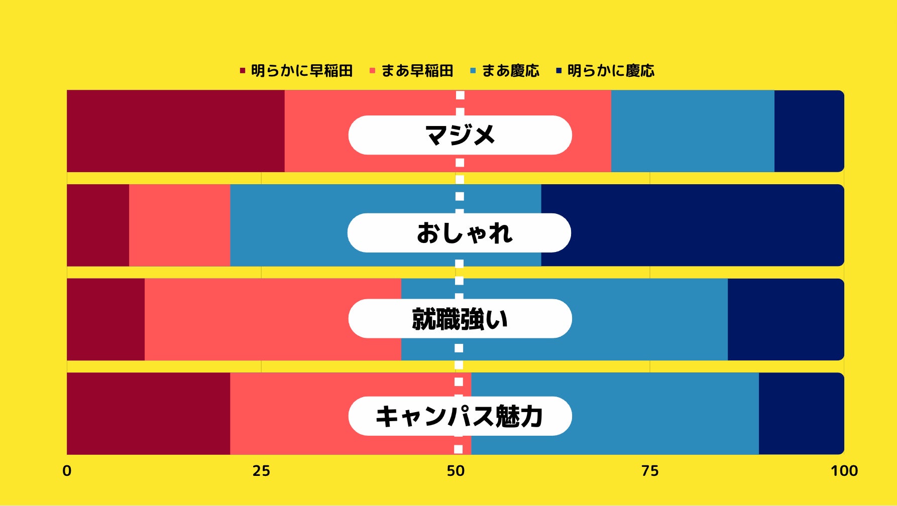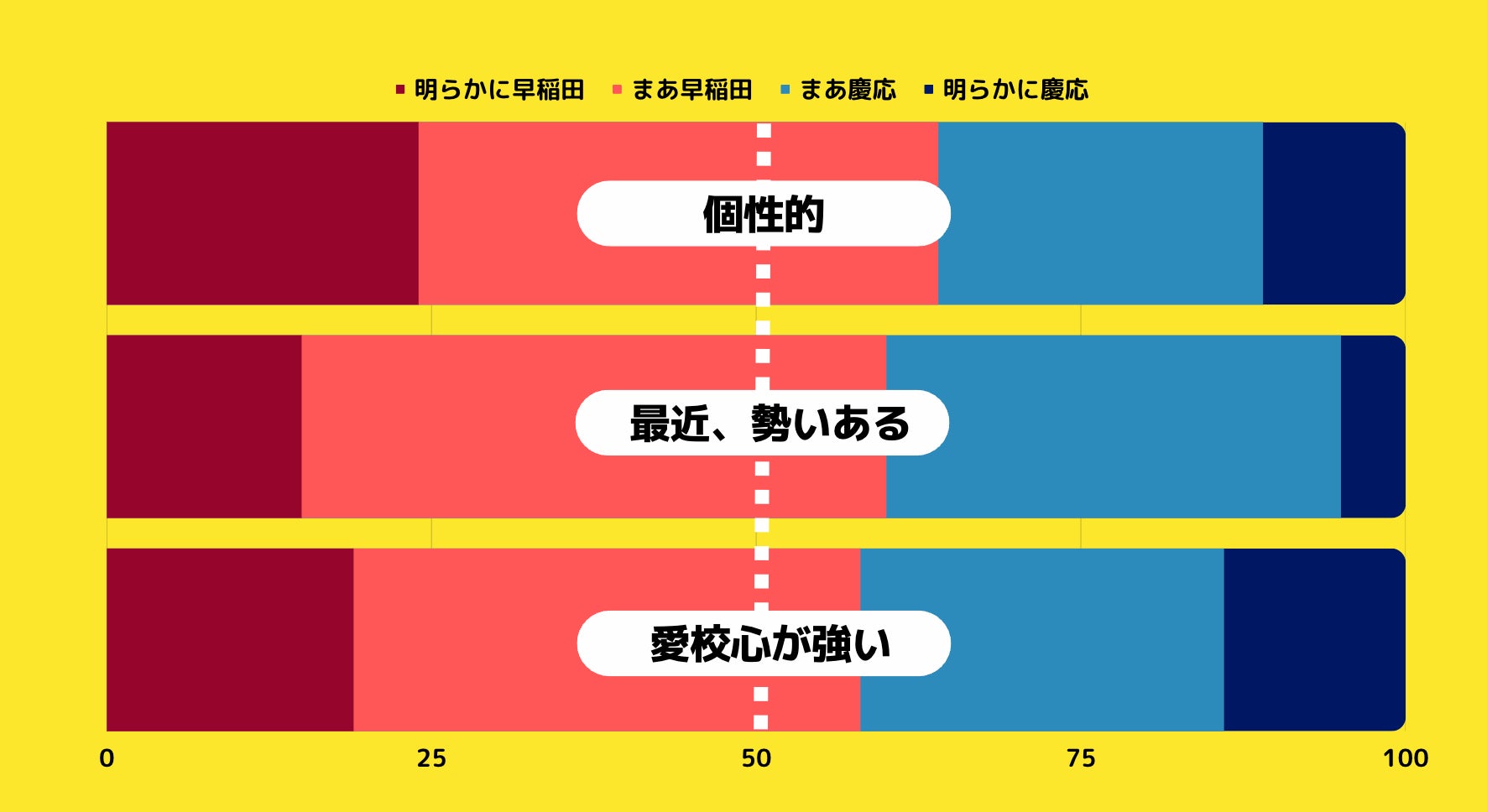 ○○なのは、早稲田か慶應か。現役大学生に両大学のイメージを調査してみた。