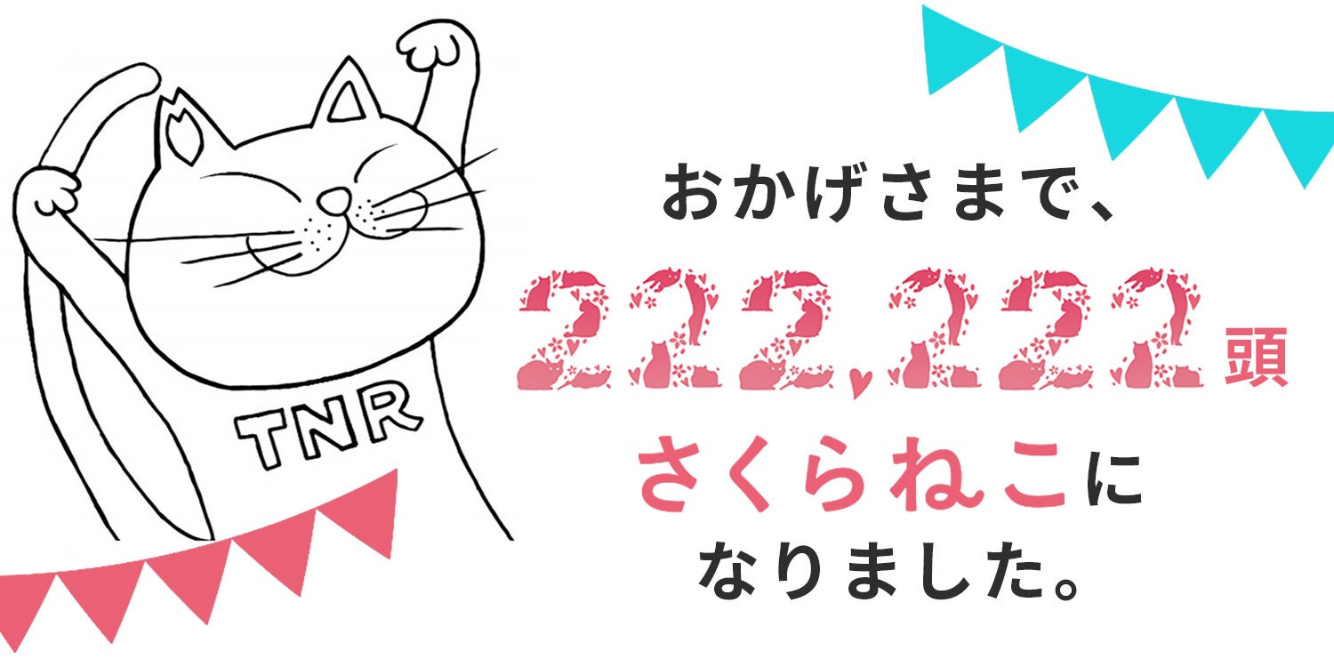 2005年の事業開始当初は協力病院も協働するボランティアも少なく、出口のないトンネルをさまよっているようでしたが、地道に取り組むこと17年。ついに「さくらねこTNR」で誕生した「さくらねこ」が222,222頭に達します。