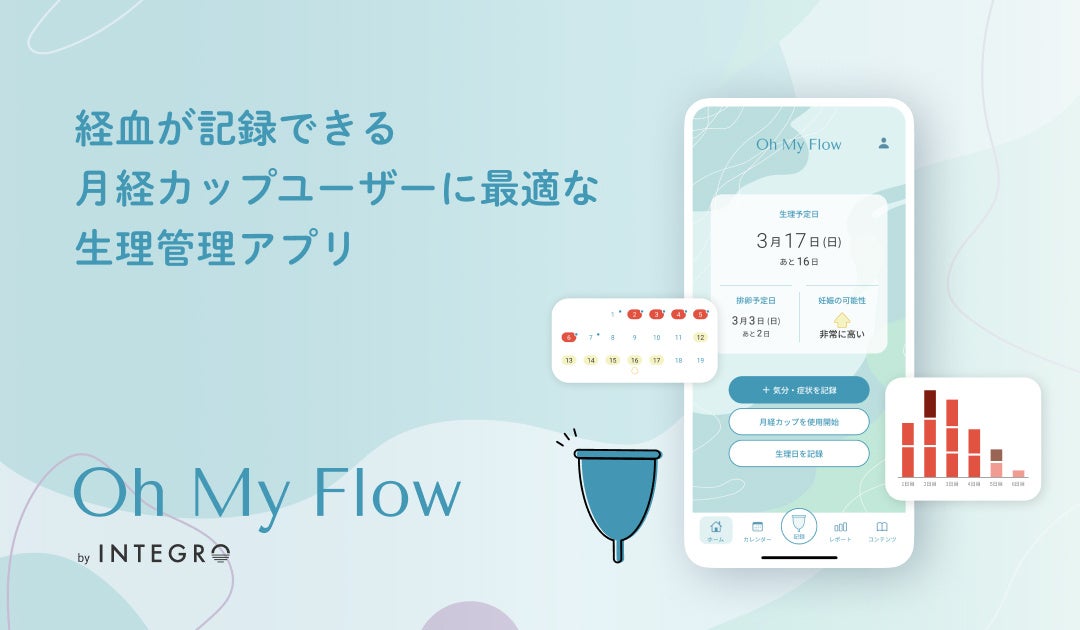 月経カップや吸水ショーツを販売するインテグロ株式会社(本社:東京都目黒区、代表取締役 神林美帆、以下「インテグロ」)は、2024年4月8日(月)に、月経カップユーザーに最適な生理管理アプリ「Oh My Flow(オーマイフロー)」のベータ版をリリースしました。
