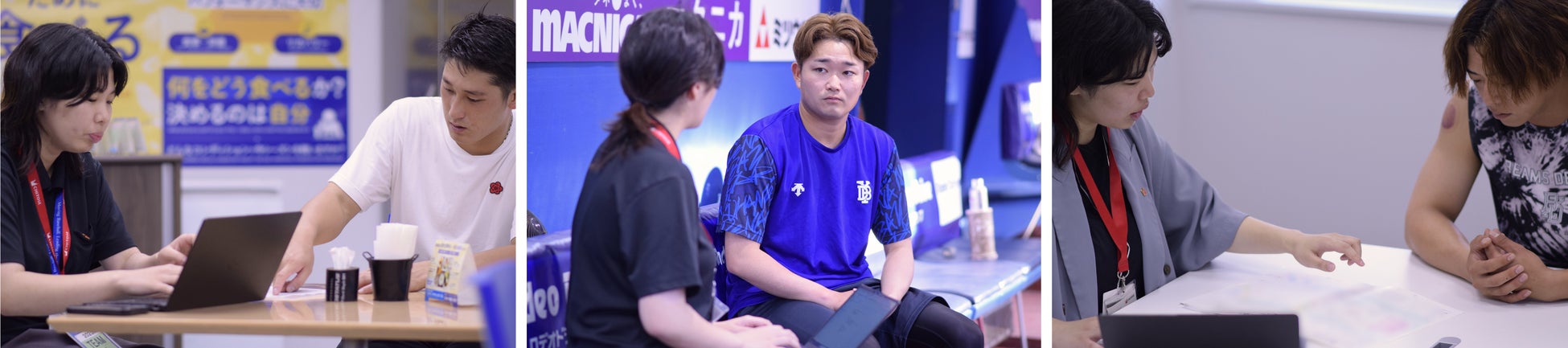 腸内細菌叢の状況を複数回の検査で把握し、結果の解析とあわせて食事・生活習慣・体調を徹底的に確認。腸内細菌叢の知識深化を図りながら、選手ごとの課題と目標を設定。