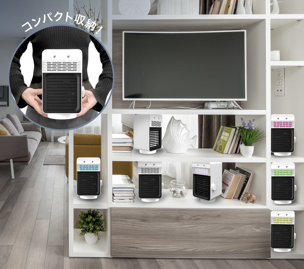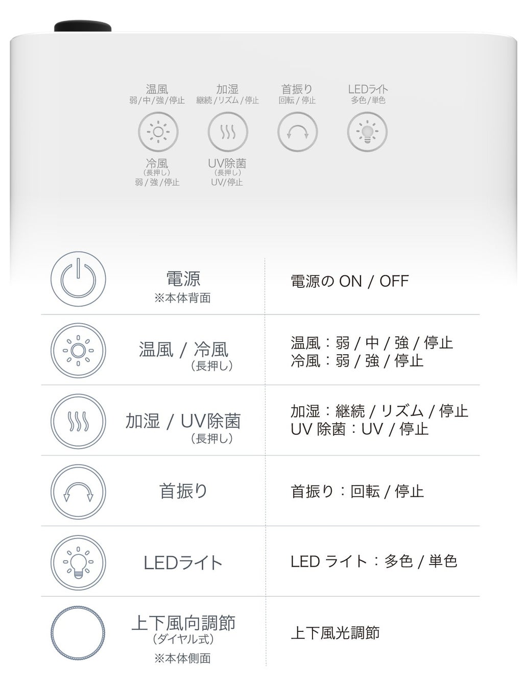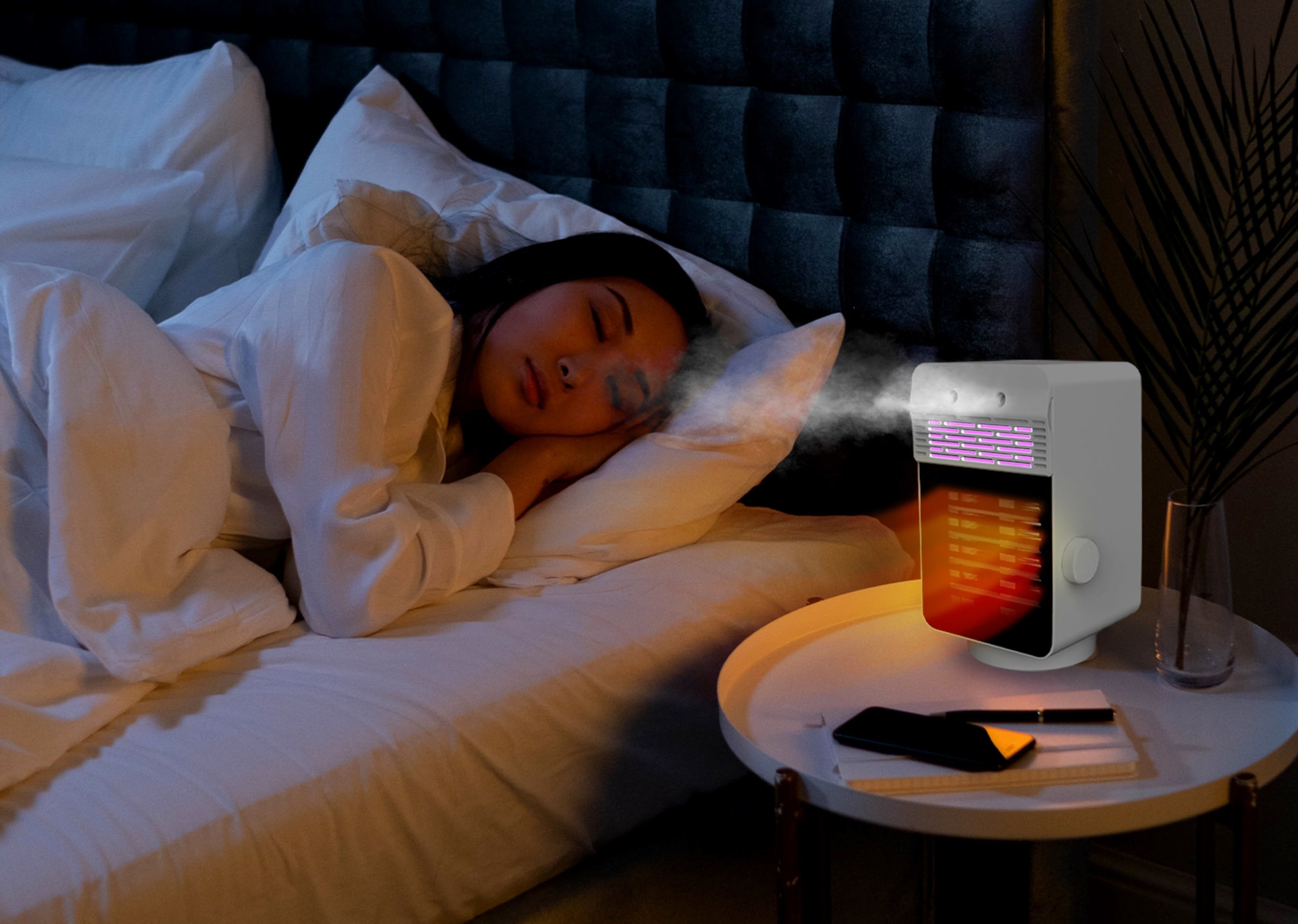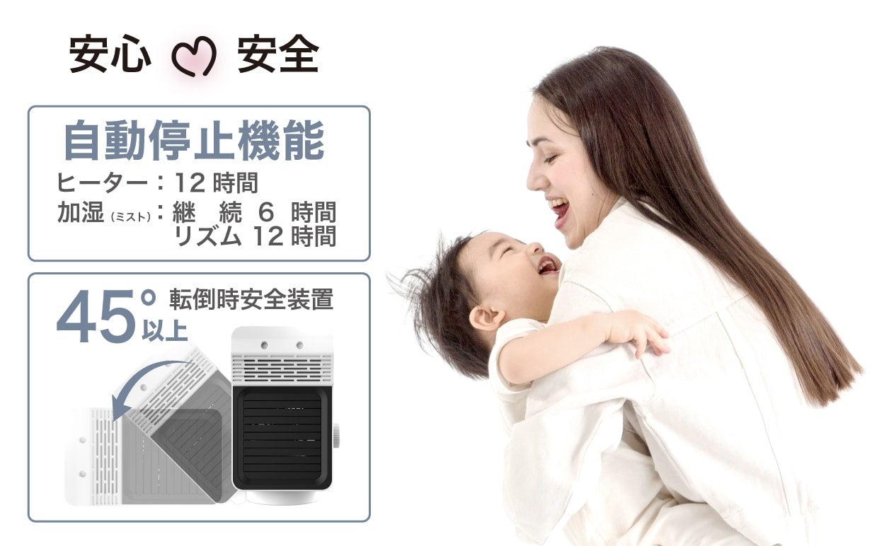 1台で暖房、加湿、冷風扇、UV除菌の4つの機能を兼ね備えた、1年中使用可能な多機能卓上ヒーターです。